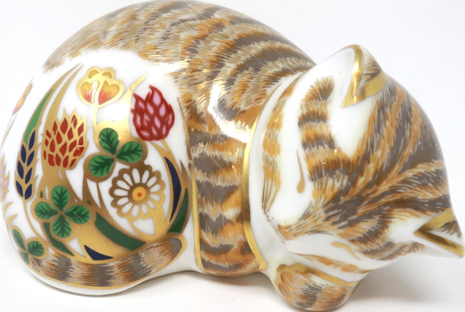 Royal Crown Derby cottage garden kitten with gold stopper, H: 50 mm. P&P Group 1 (£14+VAT for the first lot and £1+VAT for subsequent lots)
