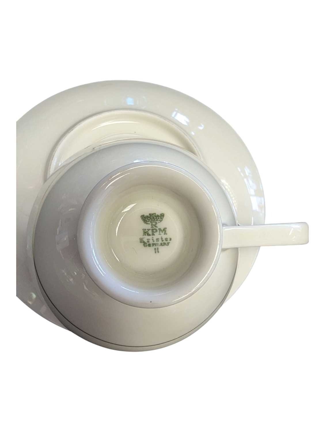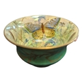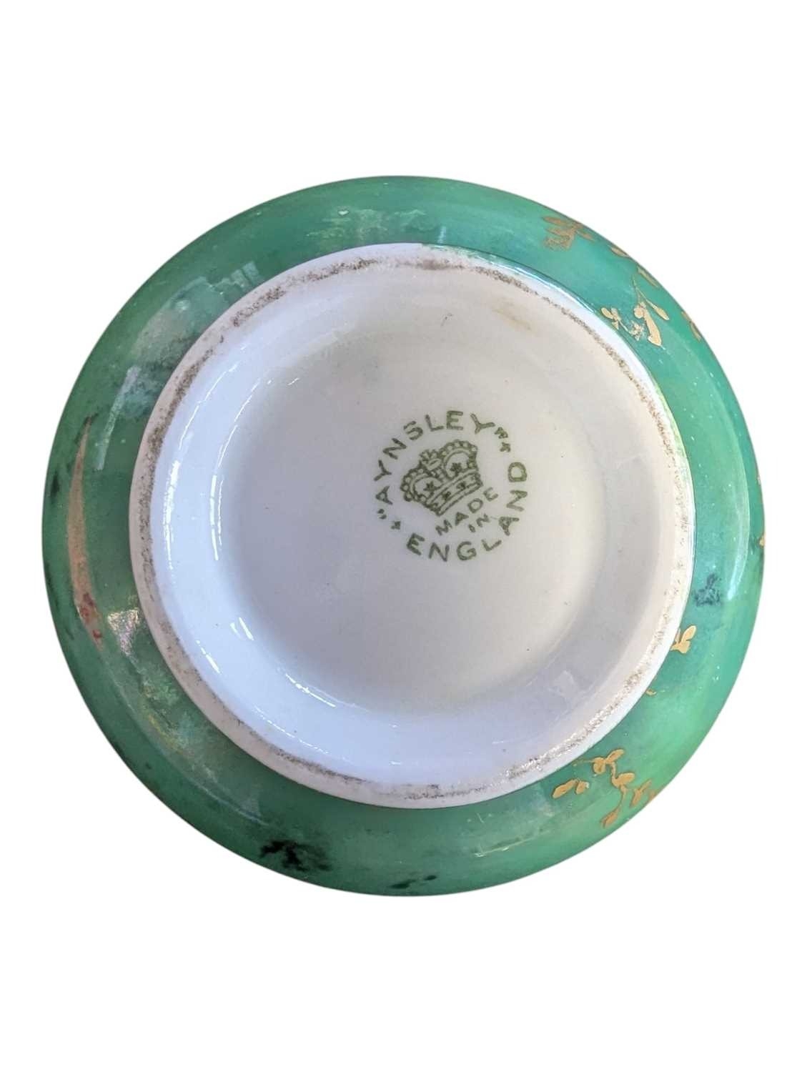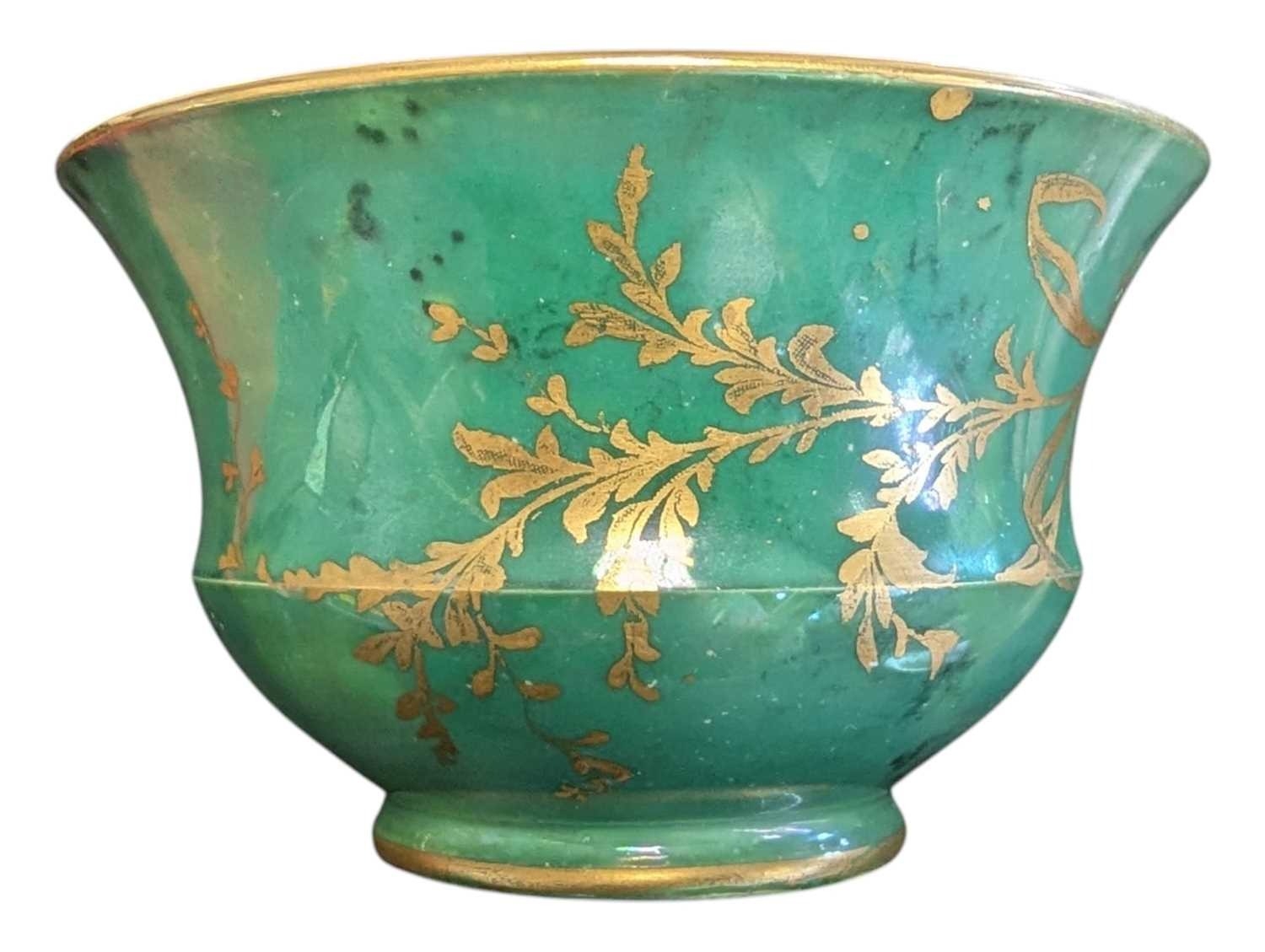 An Aynsley 1920s lustre butterfly china bowl and a German KPM art deco china teacup and saucer in a blush pink and gilt colourway. Maker's marks to the bases. Bowl measuring approx. 5.5cm x 9cm x 9cm.