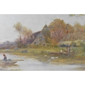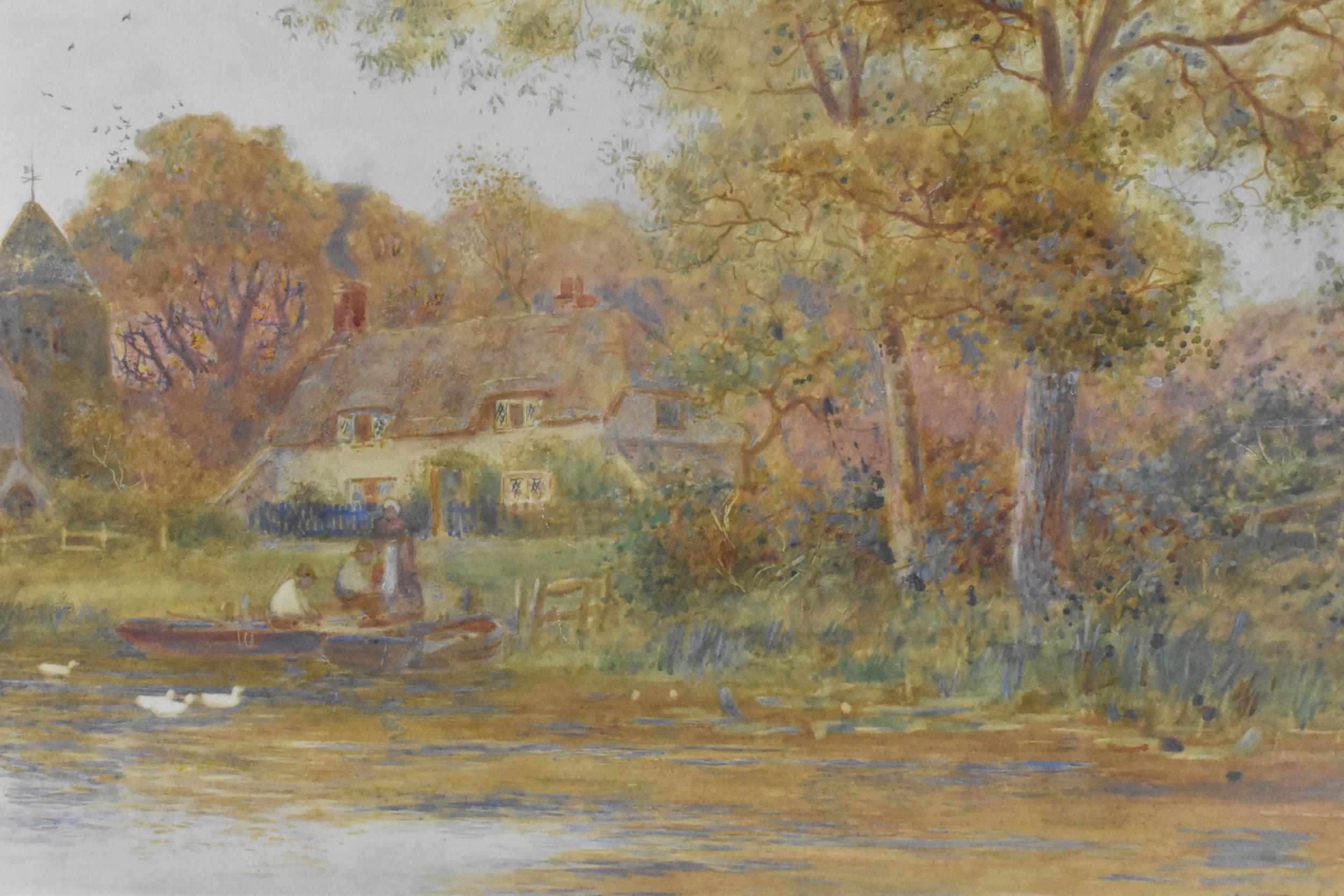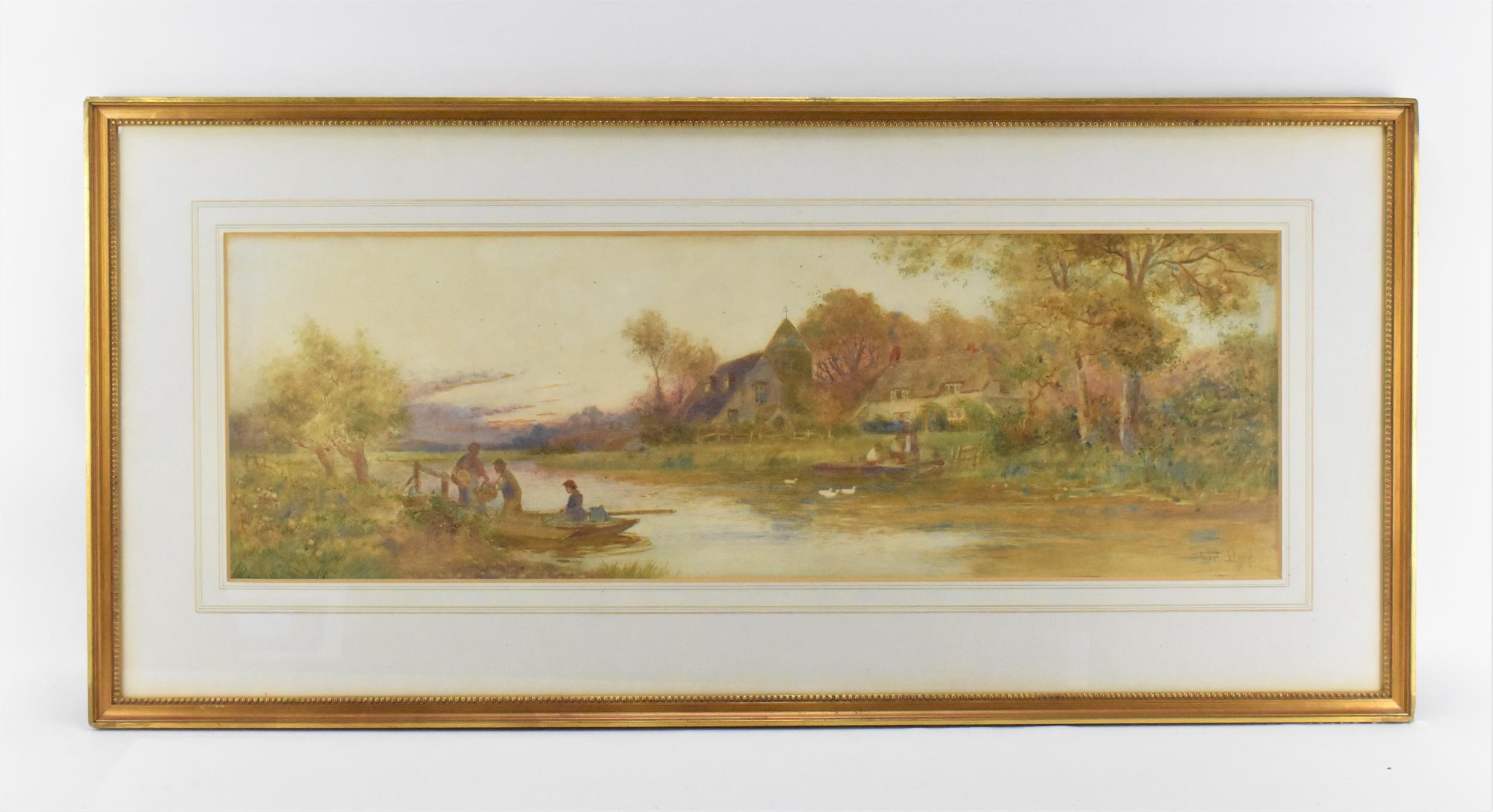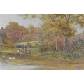 'Golden Cottage on the river Arun', signed lower right, watercolour on paper, 28 cm x 88 cm, within a glazed giltwood frame