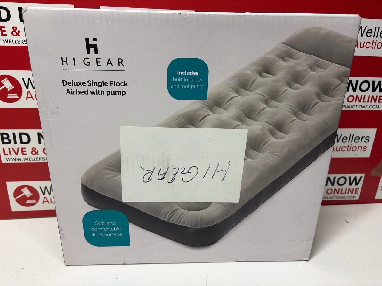 NEW HIGEAR DELUXE SINGLE FLOCK AIRBED WITH PUMP