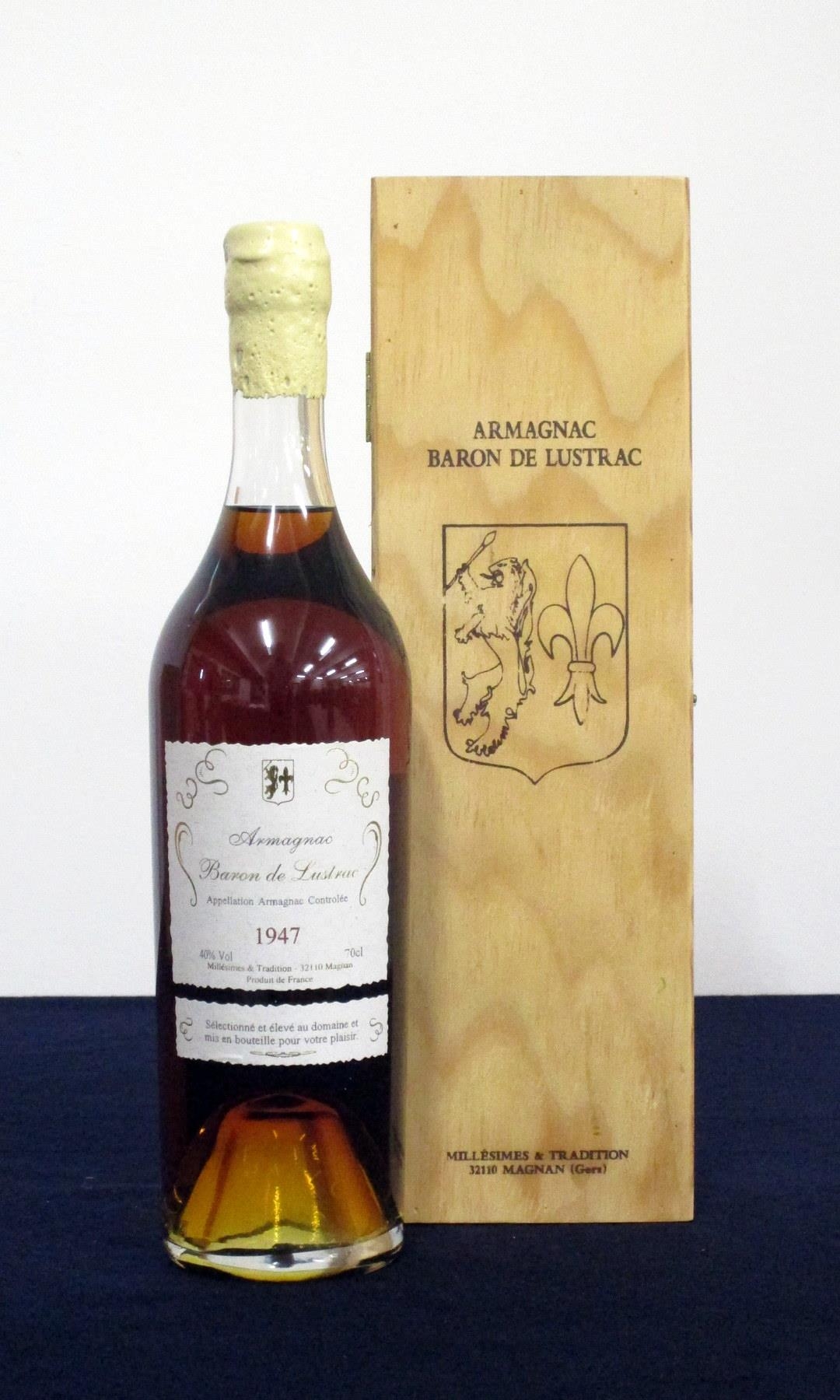 1 70-cl bt Baron de Lustrac Armagnac Sélectionné et Élevé au Domaine et Mis en Bouteille pour votre Plaisir 1947 40% owc