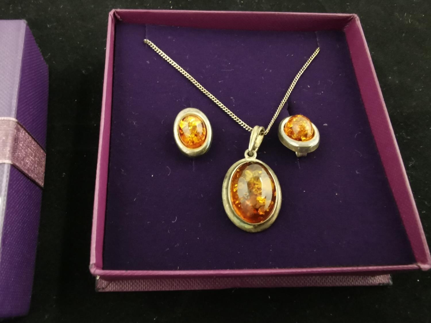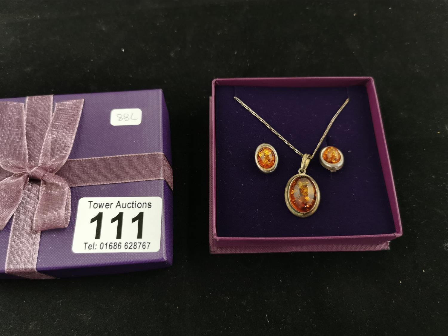 925 Silver Genuine Amber Necklace & Earring Set