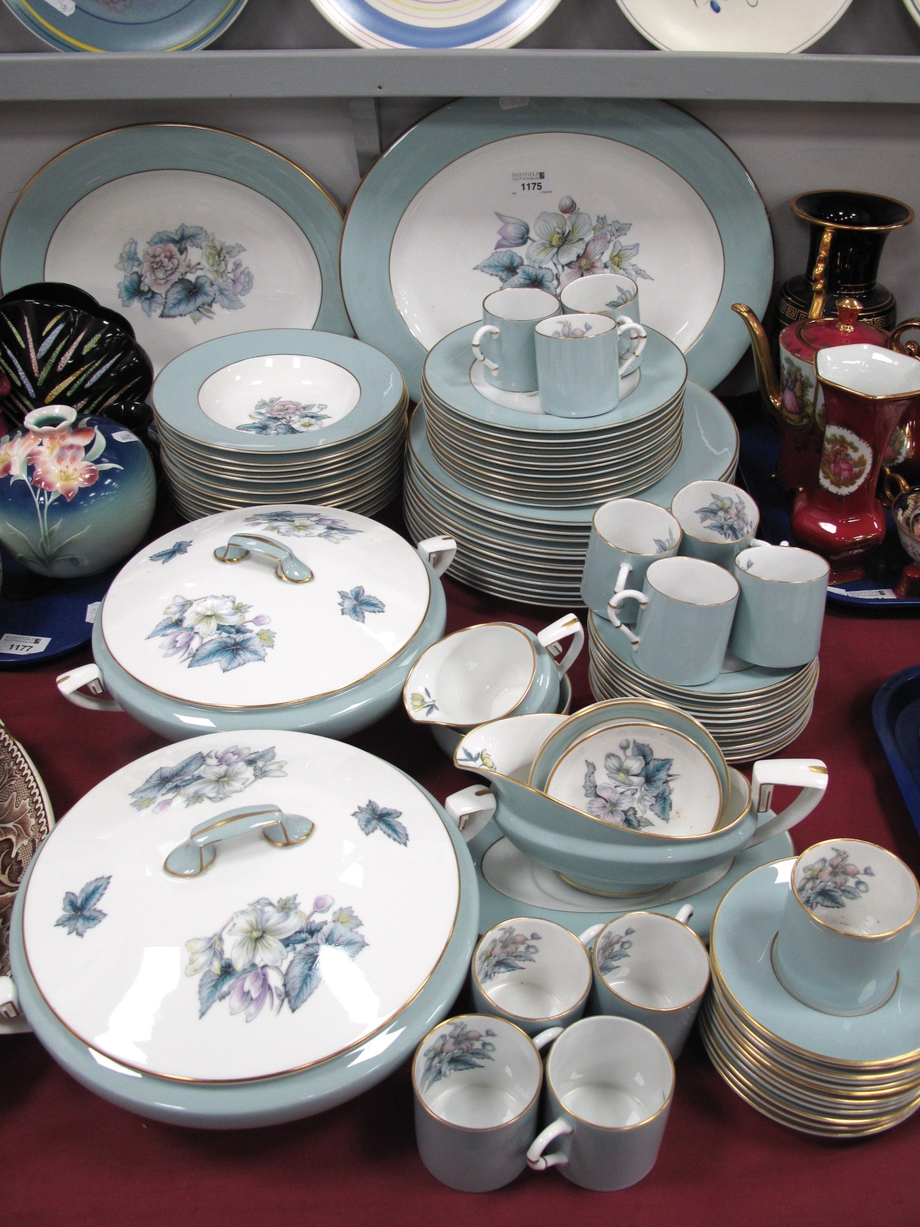Large service so not every piece thoroughly checked, some light scratching to surface on plates and dishes, tureens good, no chips present, would benefit from a clean.