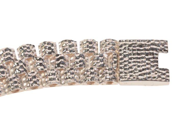 in sterling silver, formed of three rows of domed links with hammered finish, secured with a tongue and groove clasp, full British hallmarks,18.5cm / 7.2in, (gross weight - c.35.8g)