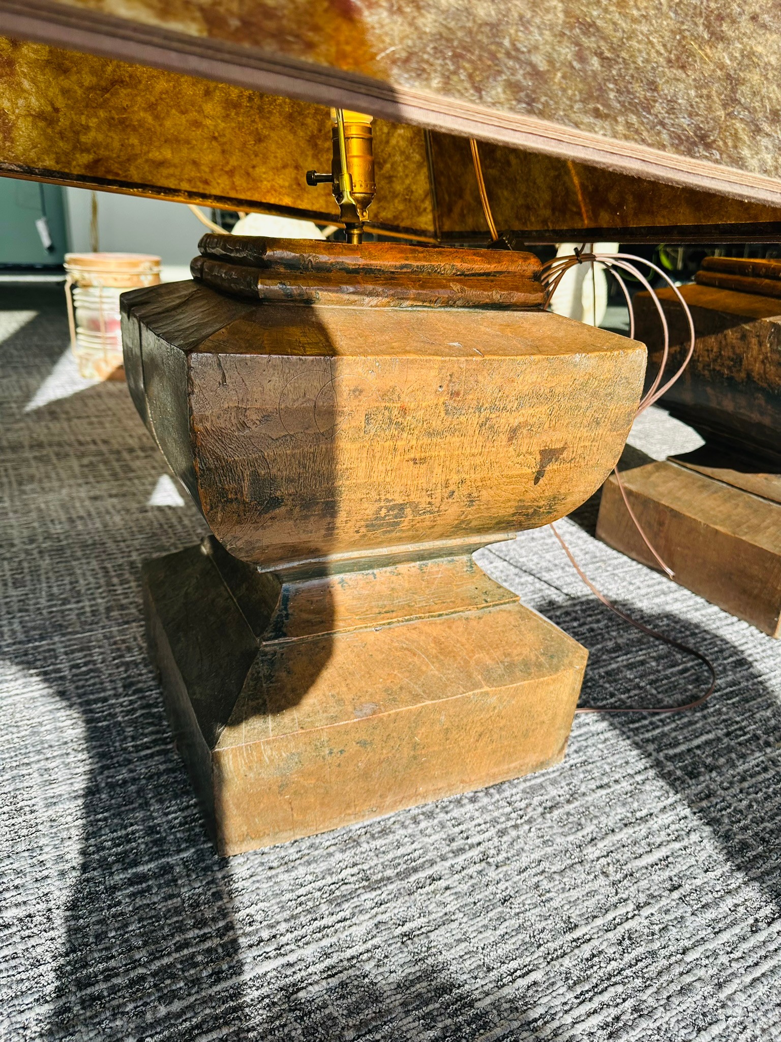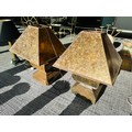 2 large wooden carved table lamps with magnificanet translucent matching shades 80cm high x 60cm wide