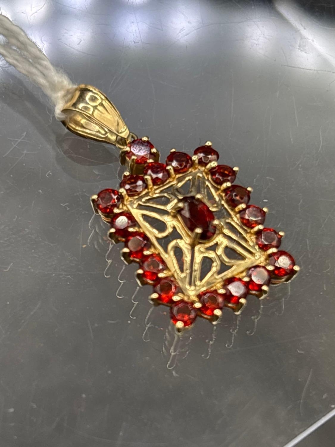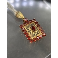 A oblong garnet pendant