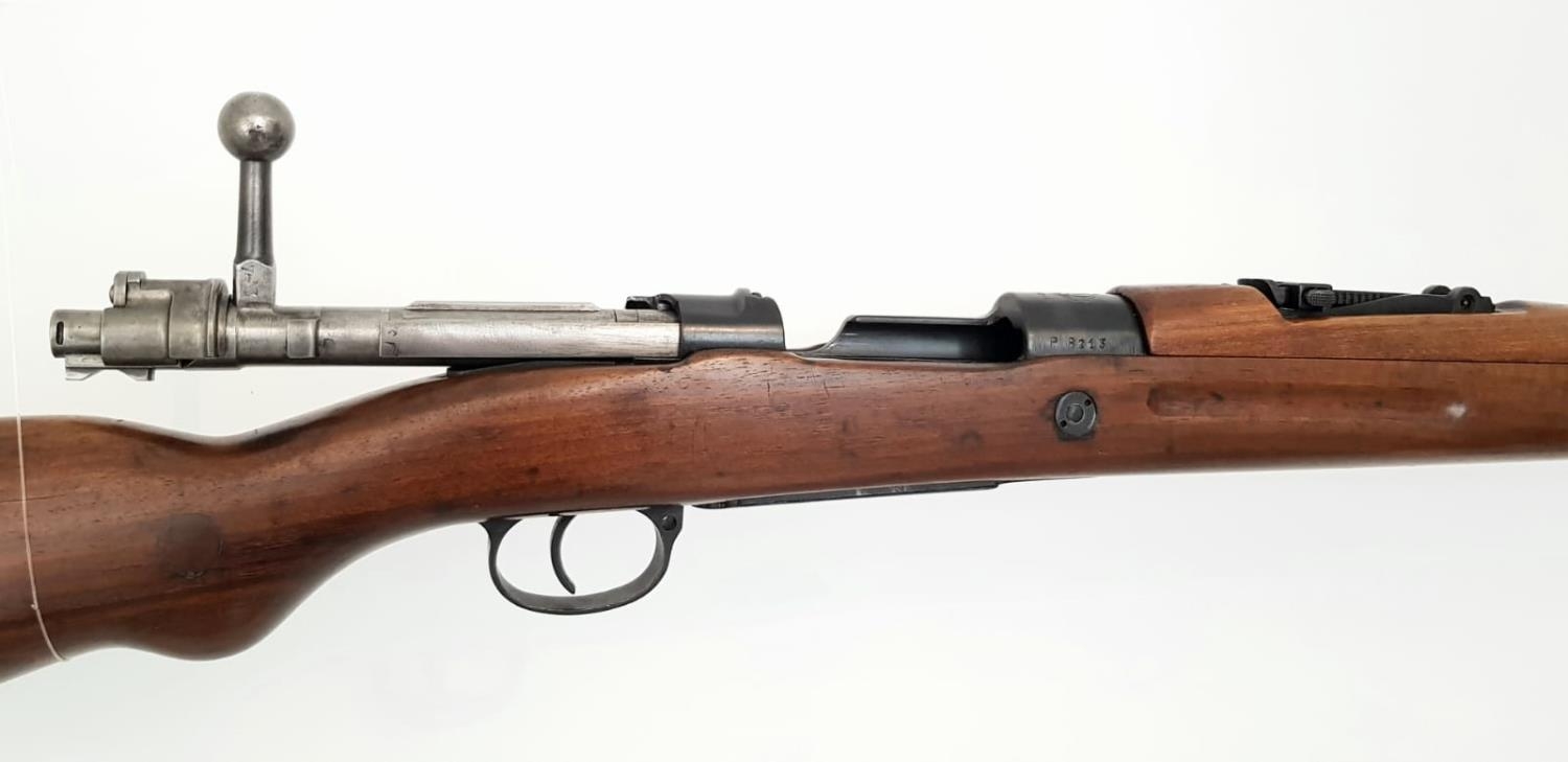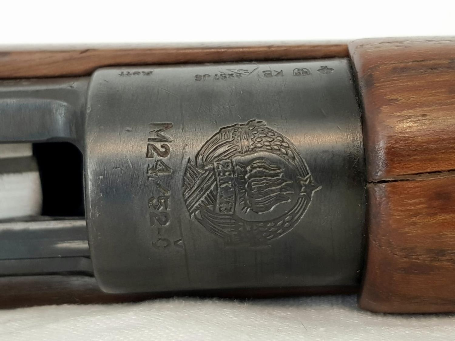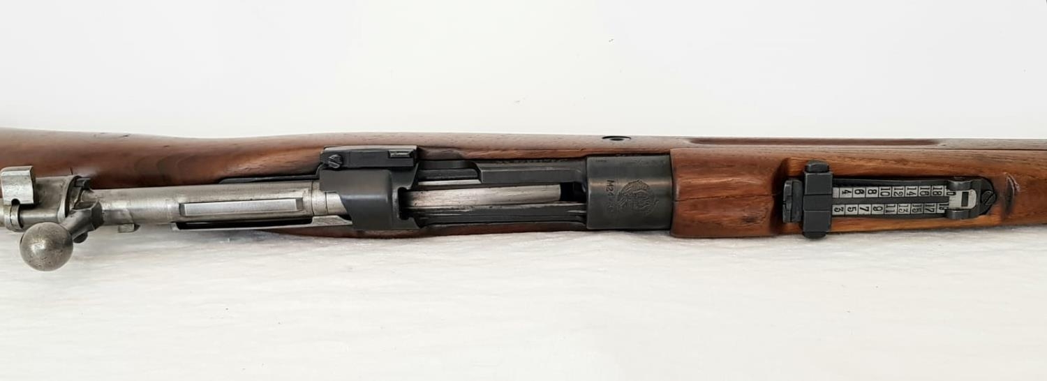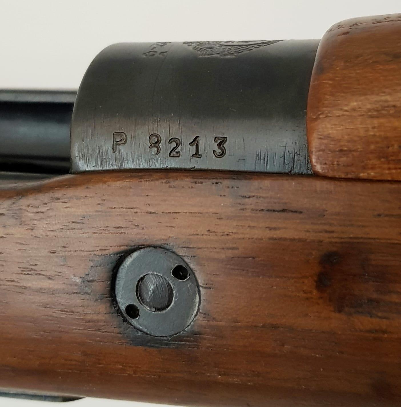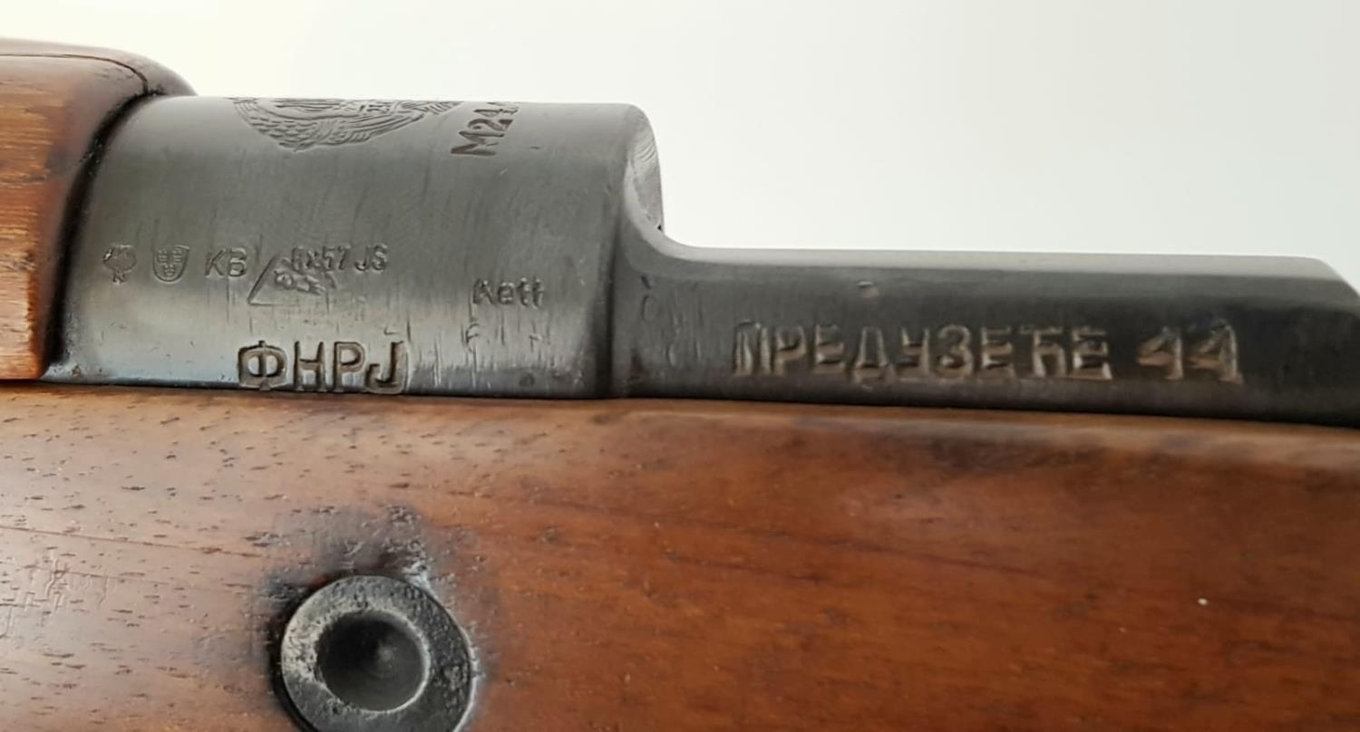 A Yugoslavian Mauser K98 Bolt Action M24/52-G Service Rifle. 7.92 calibre. Good condition barrel - crest stamped into action. Nice, clean woodwork. Serial number stamped on stock - P8213.