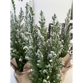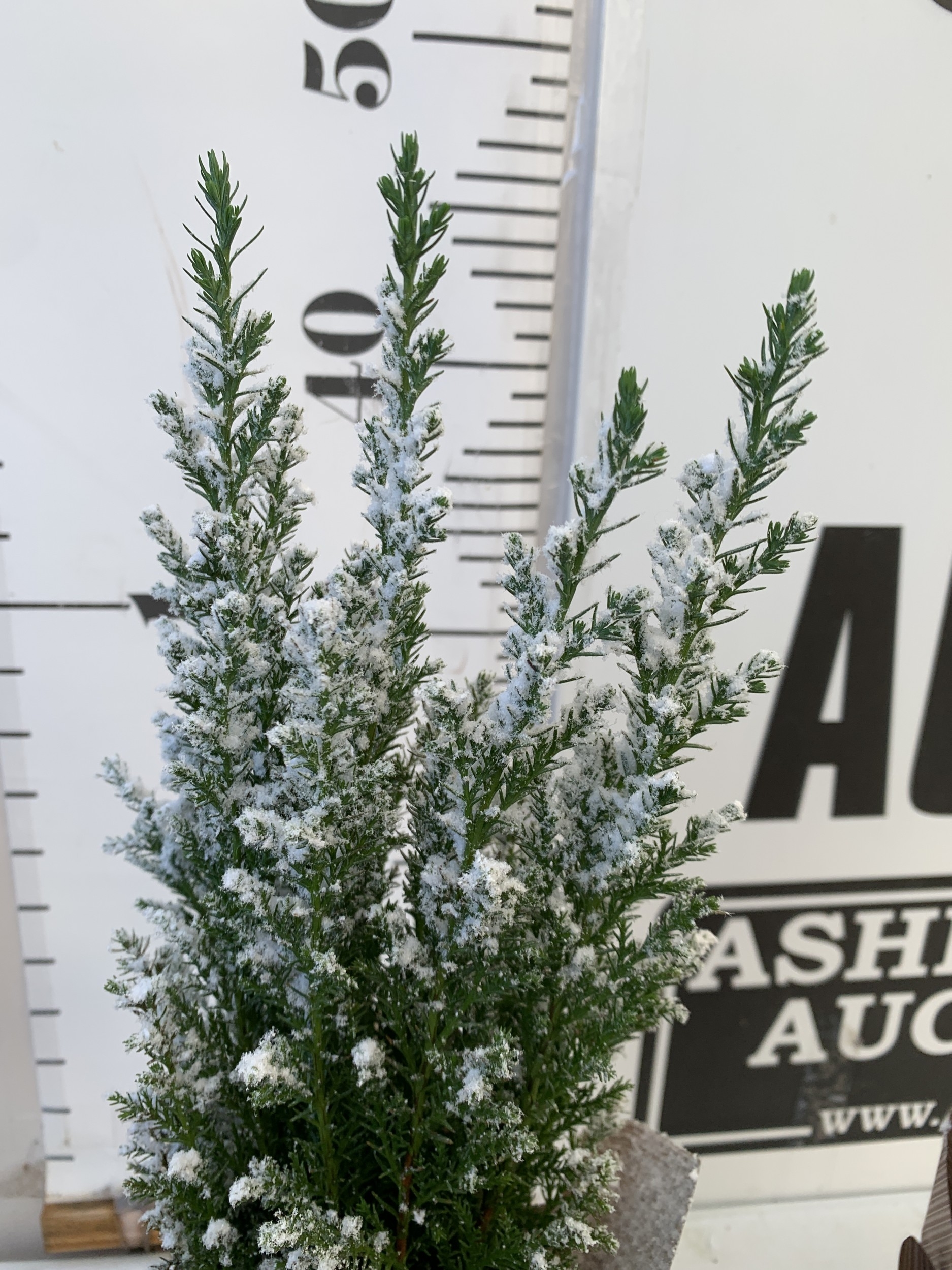 FIVE CHRISTMAS MINIATURE CONIFERS CAMAECYPARIS WITH 'SNOW' I...
