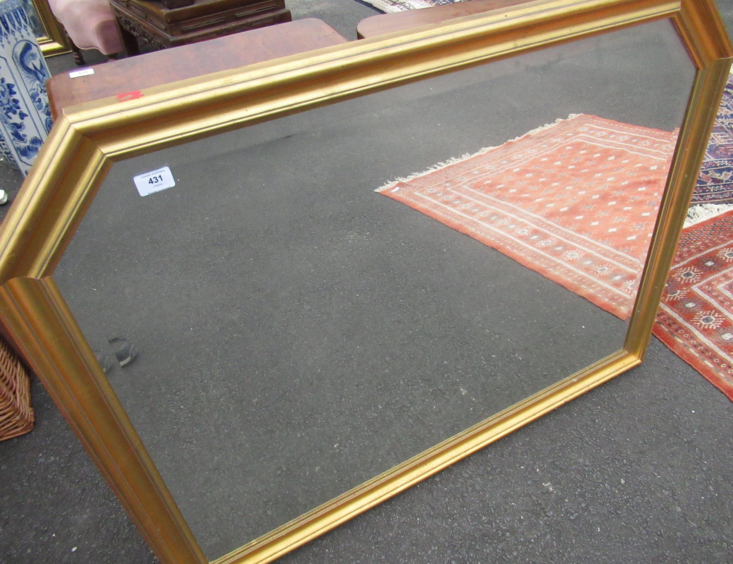 Modern gilt framed beveled edged over mantel mirror 112cm x 88cm