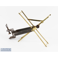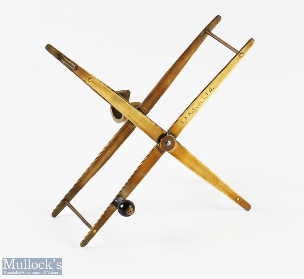A rare Army & Navy table mount brass line dryer, bulbous wood winding handle with brass 'C' clamp