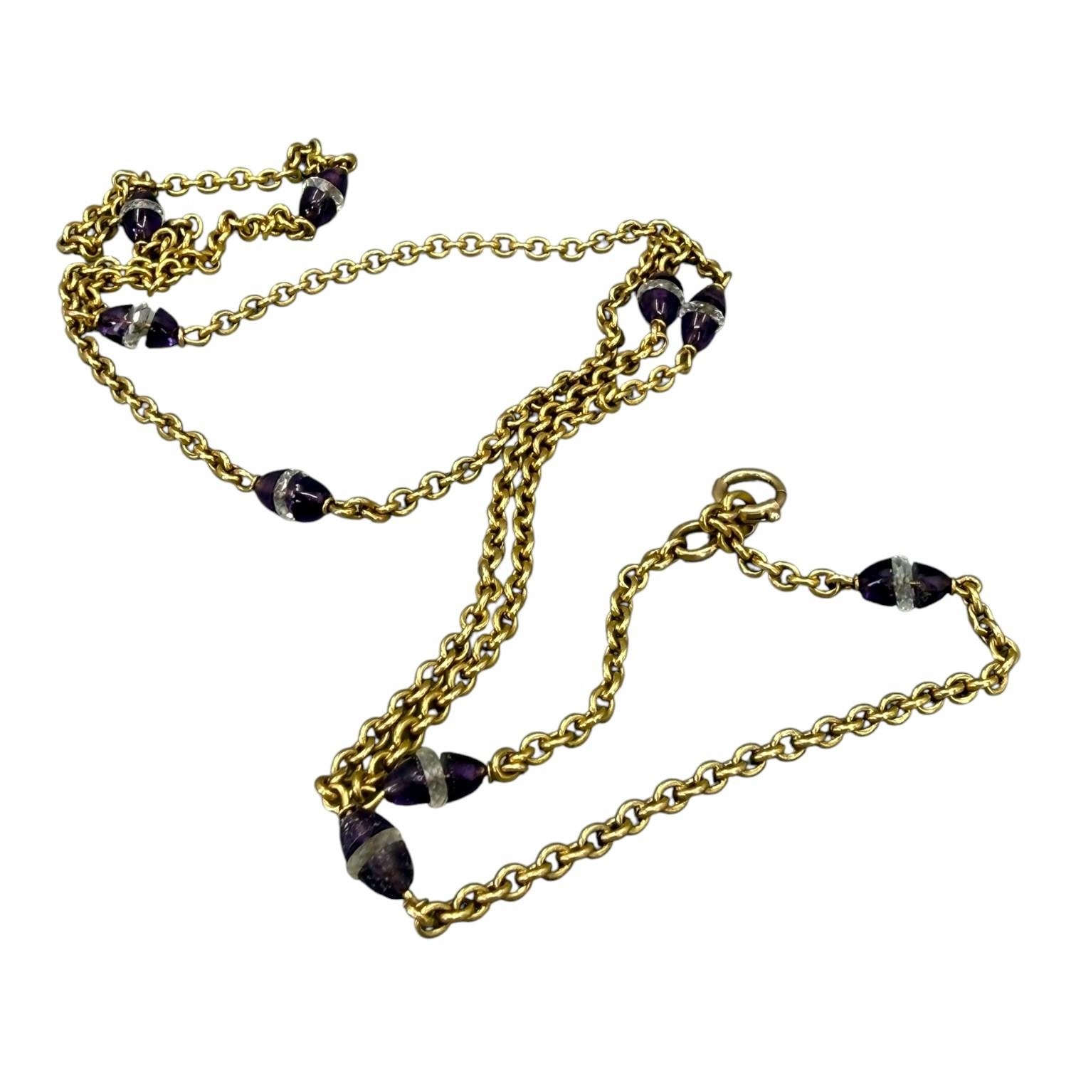 A LATE 19TH/EARLY 20TH CENTURY AUSTRO-HUNGARIAN 14CT GOLD, AMETHYST AND QUARTZ NECKLACE