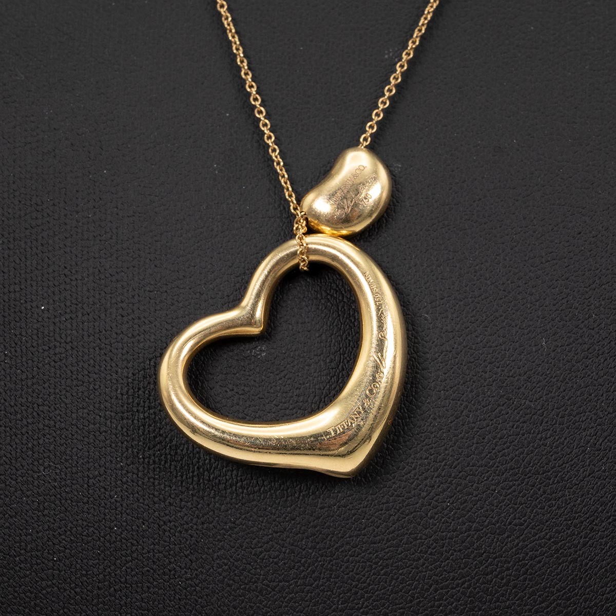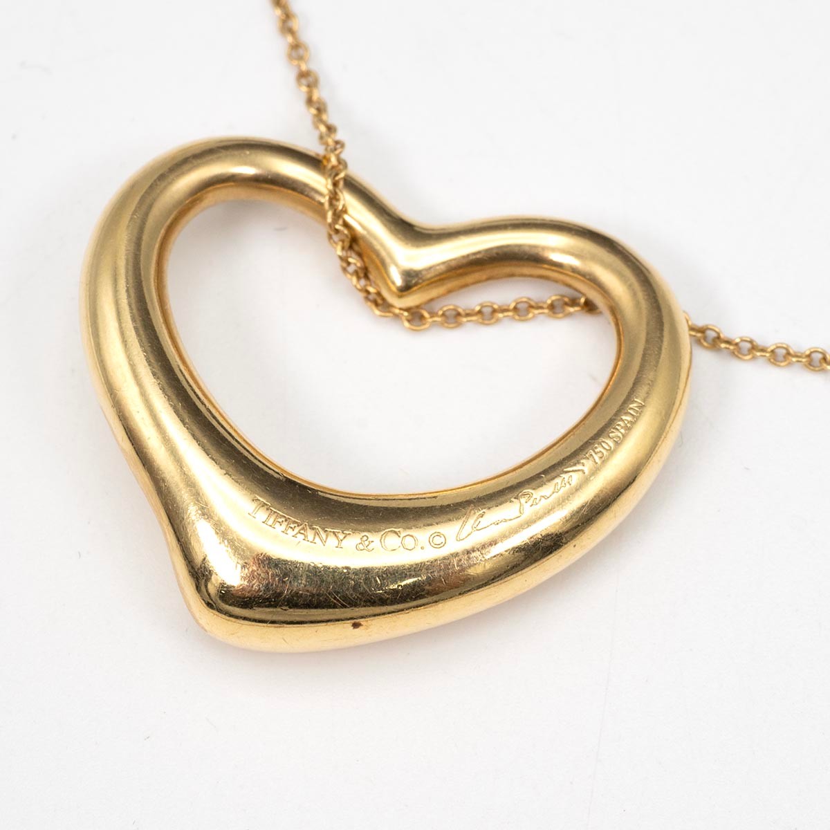 Tiffany & Co 18ct gold hallmarked and signed gold heart shaped pendant necklace, drop 22cm, weight 12.3 grams.