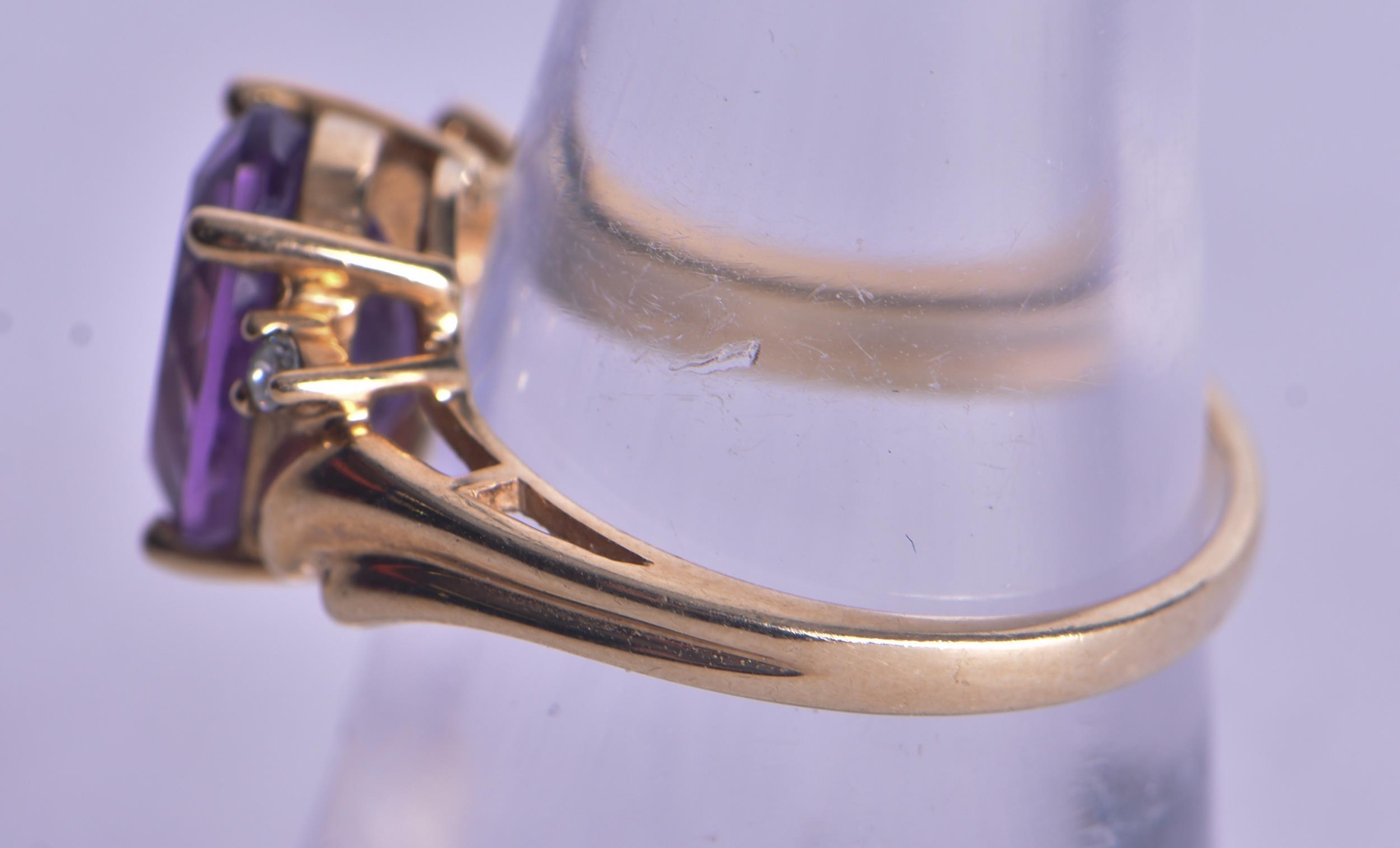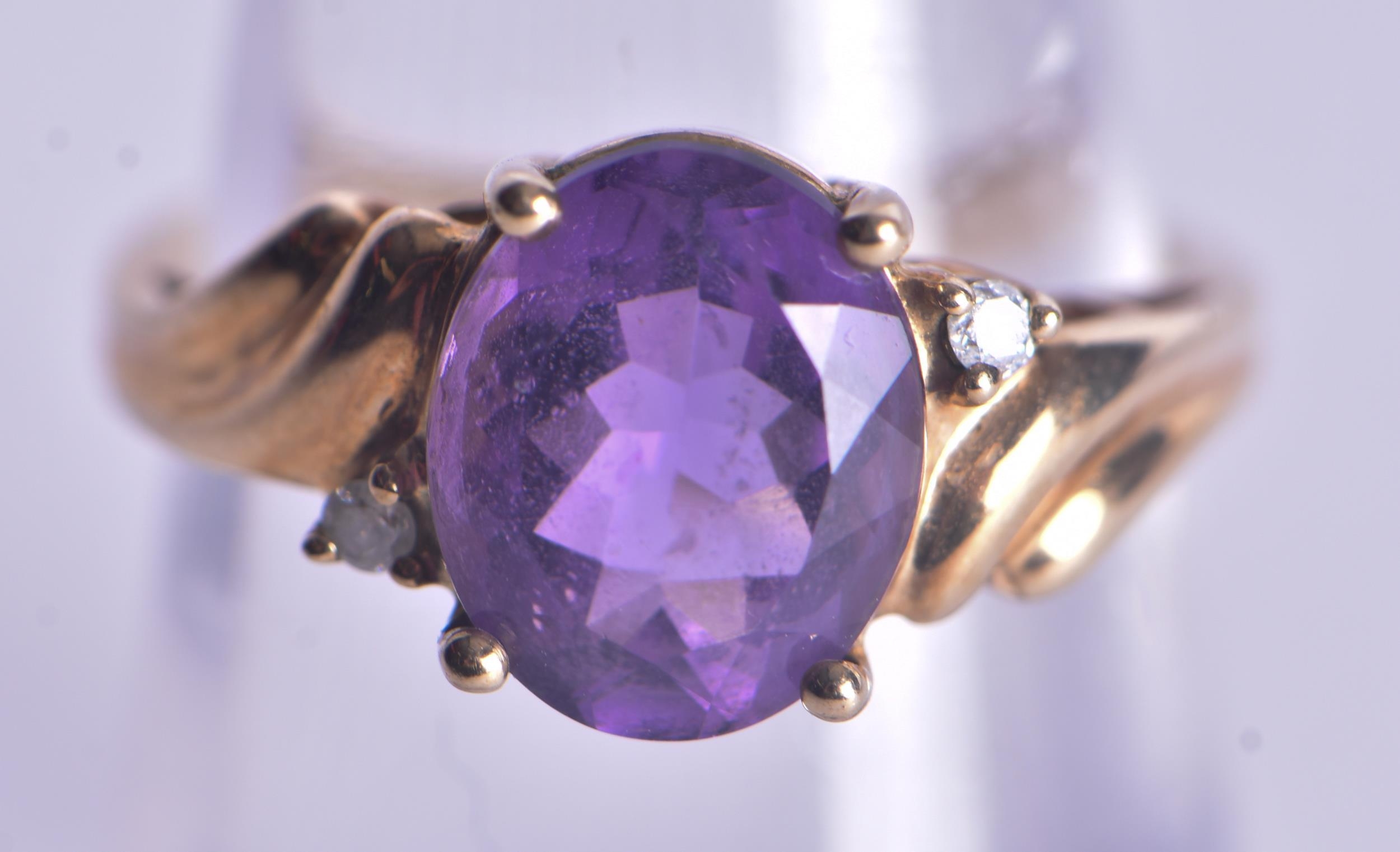 9ct gold amethyst diamond cocktail ring (2.8g). M.