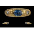 A Fine Quality 18ct Gold 3 Stone Blue Sapphire and Diamond Set Ring, Marked 18ct to Interior of Shank. The Faceted Pave Set Blue Sapphires of Excellent Colour and Clarity, Flanked by Two Pave Set Brilliant Cut Diamonds of Good COlour / Clarity, Blue Sapphire Weight 1.00 ct, Ring Size L. Weight 10.4 grams.