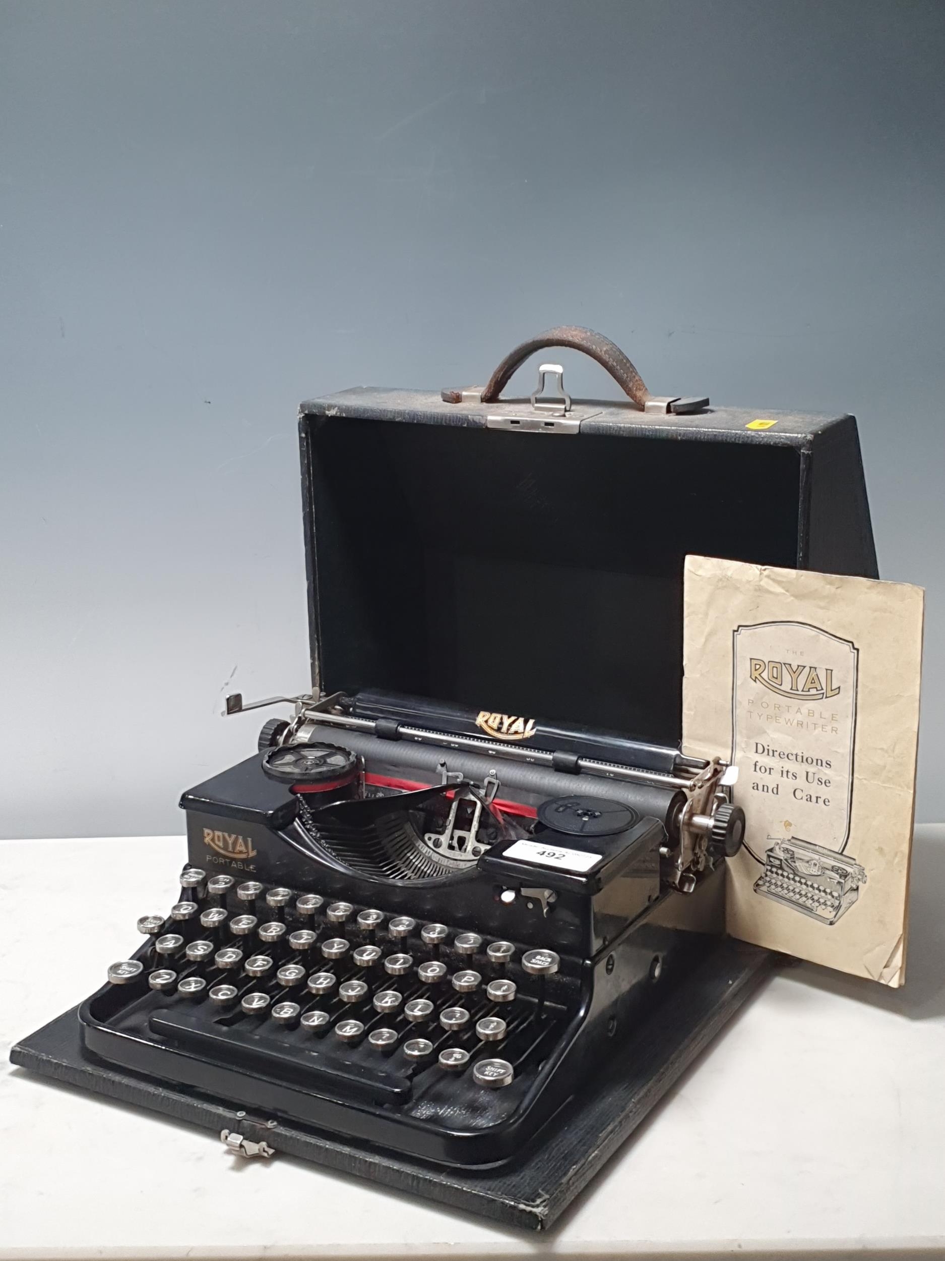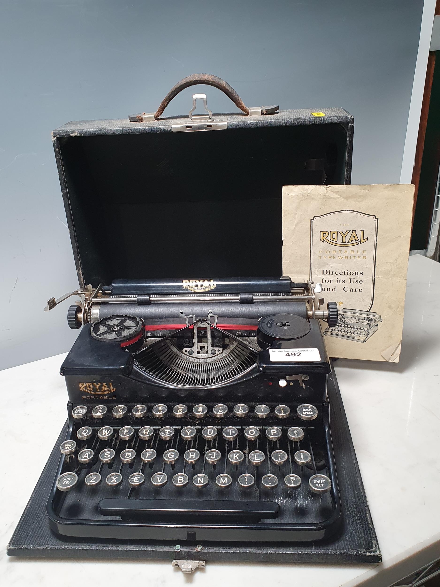 A Royal Portable Typewriter in case with original directions for use