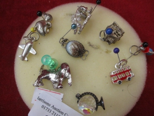 9 DIFFERENT SILVER METAL CHARMS