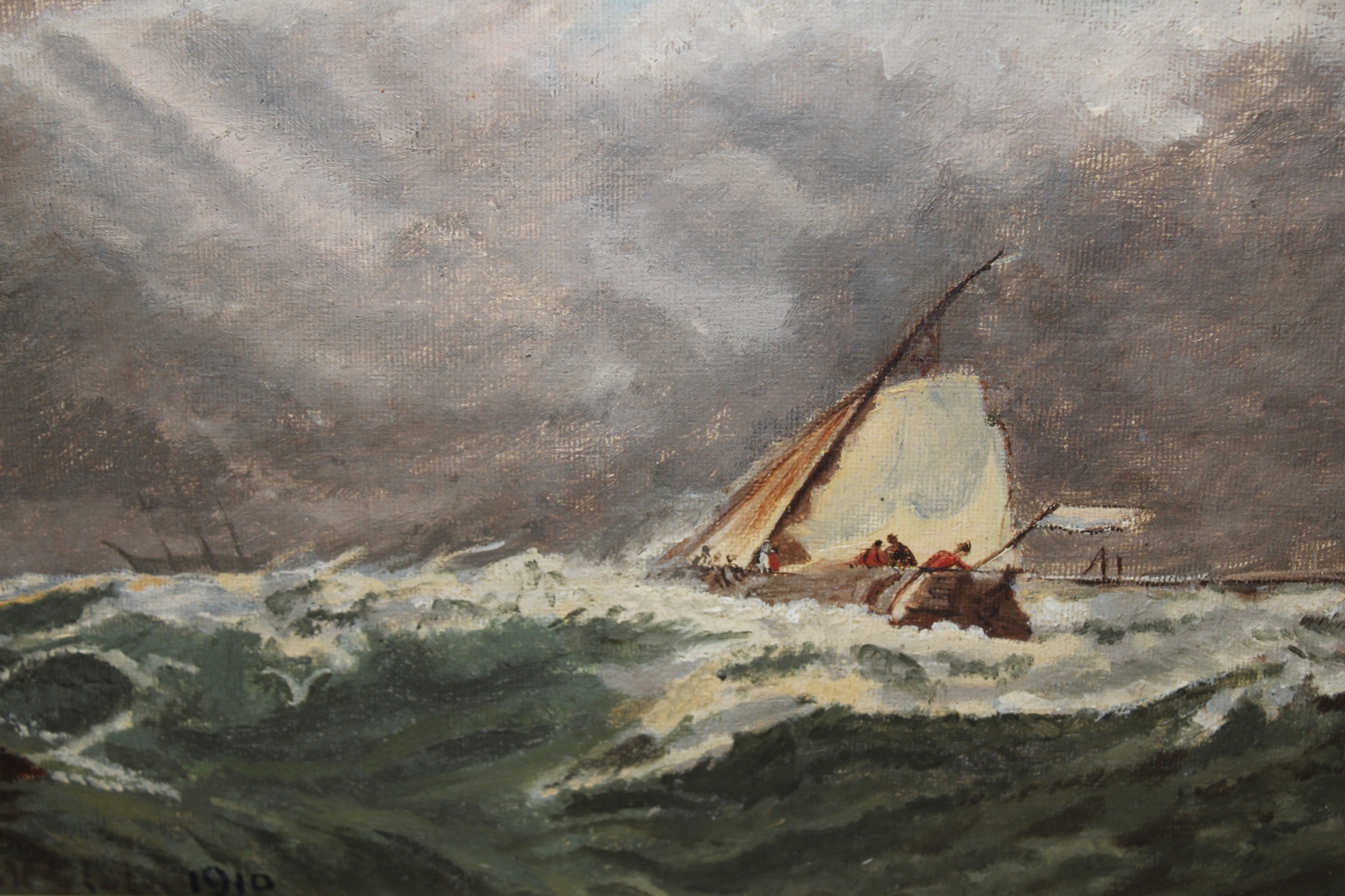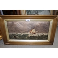 N. Keith Fennell RMS, oil on millboard, fishing smack off the coast, signed, 19 x 38cm