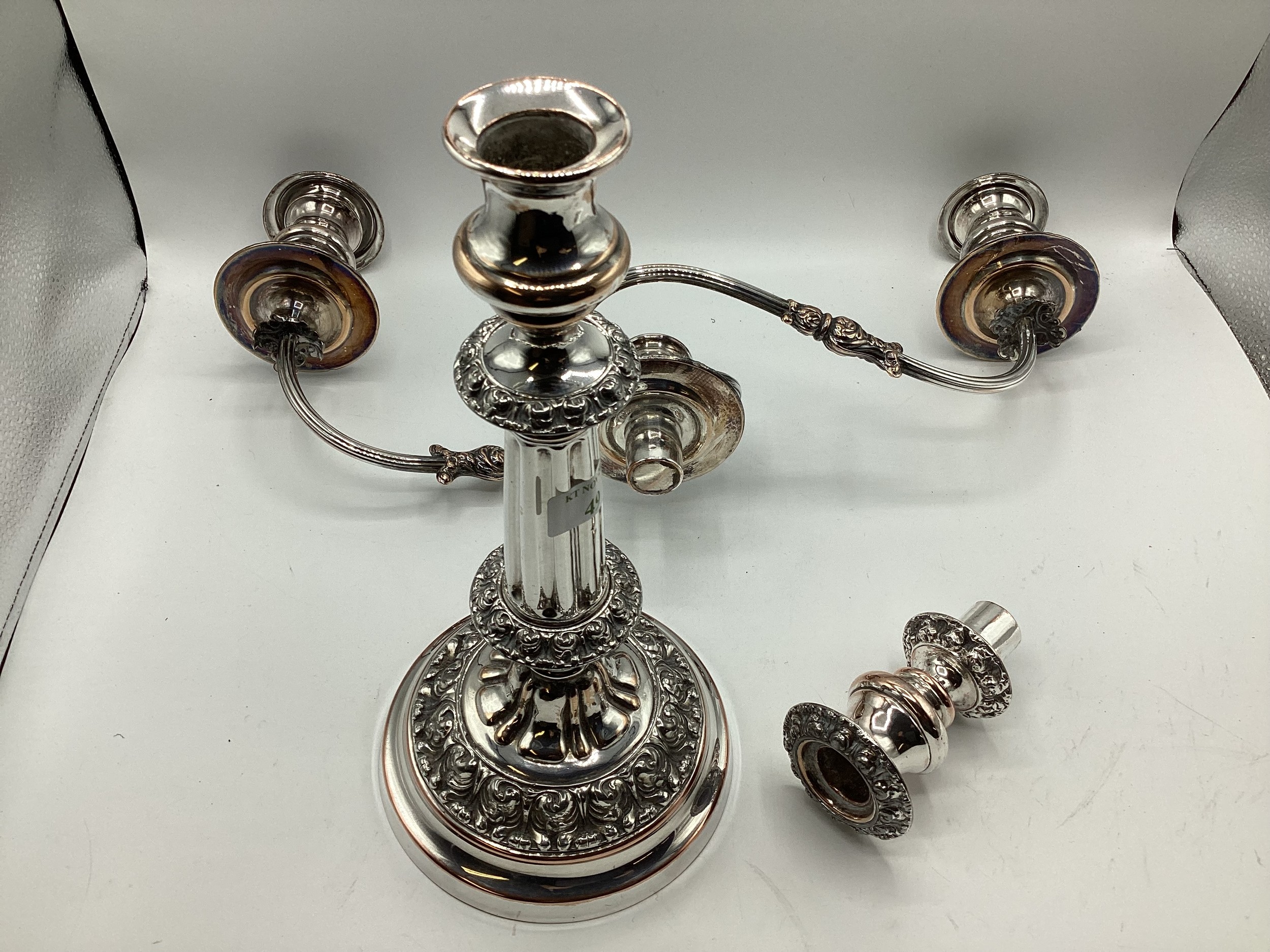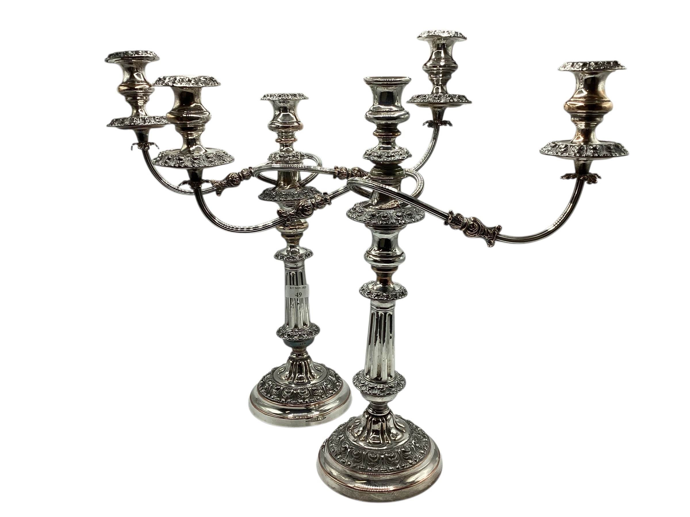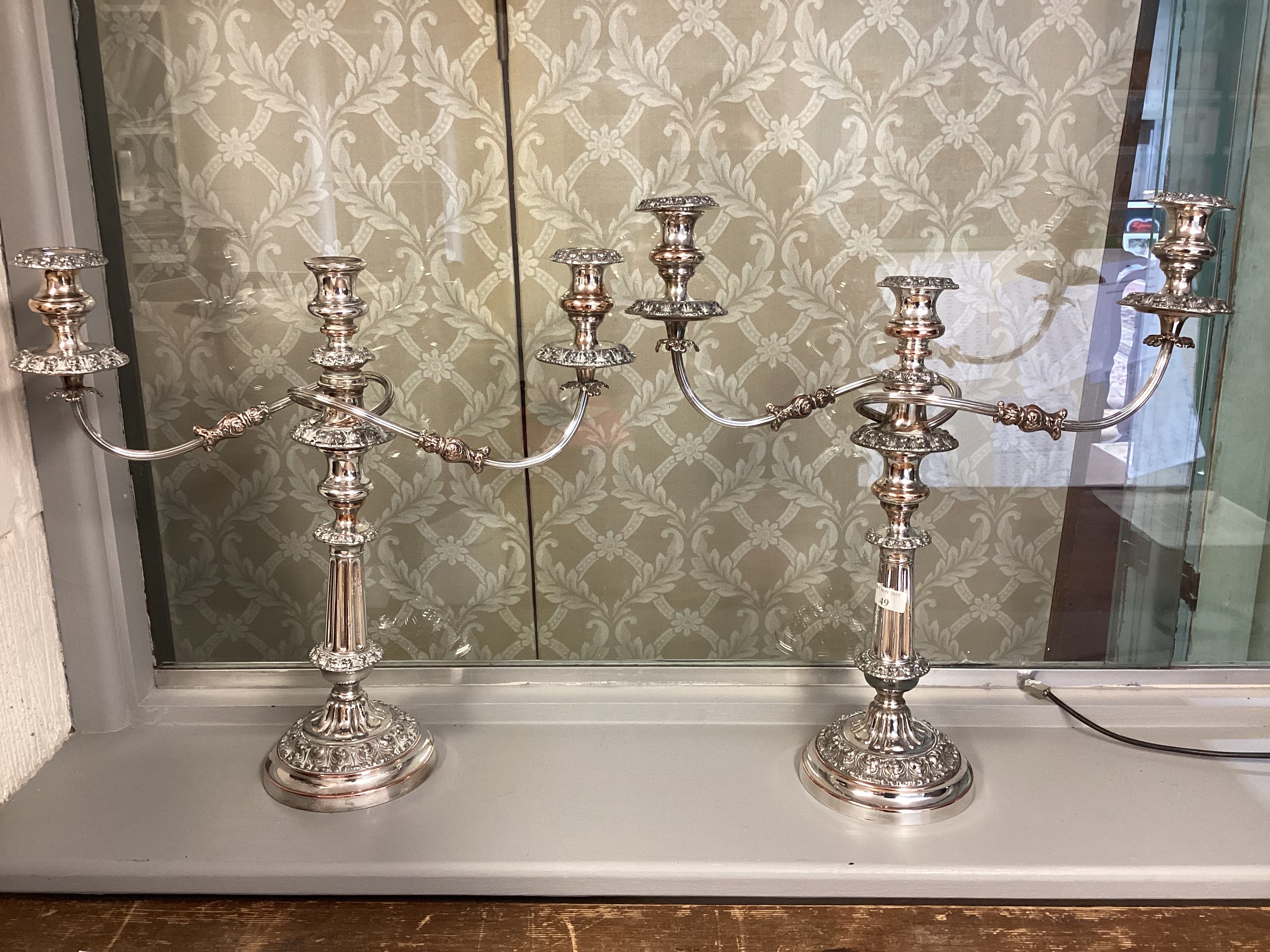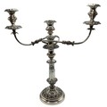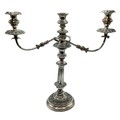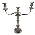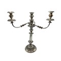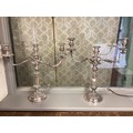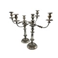 Matched pair of two branch silver plated table candelabra. 50 cm H x 46 cm W