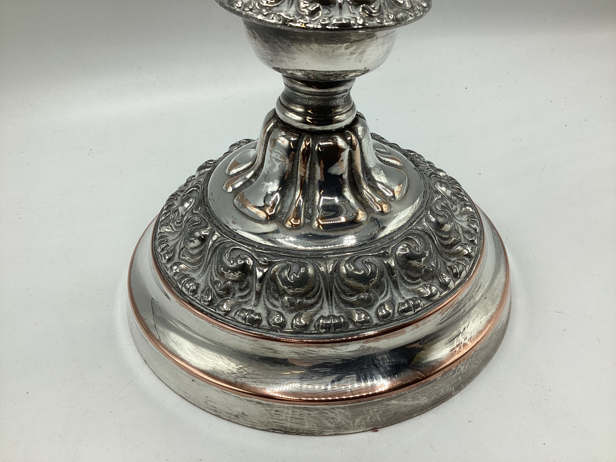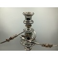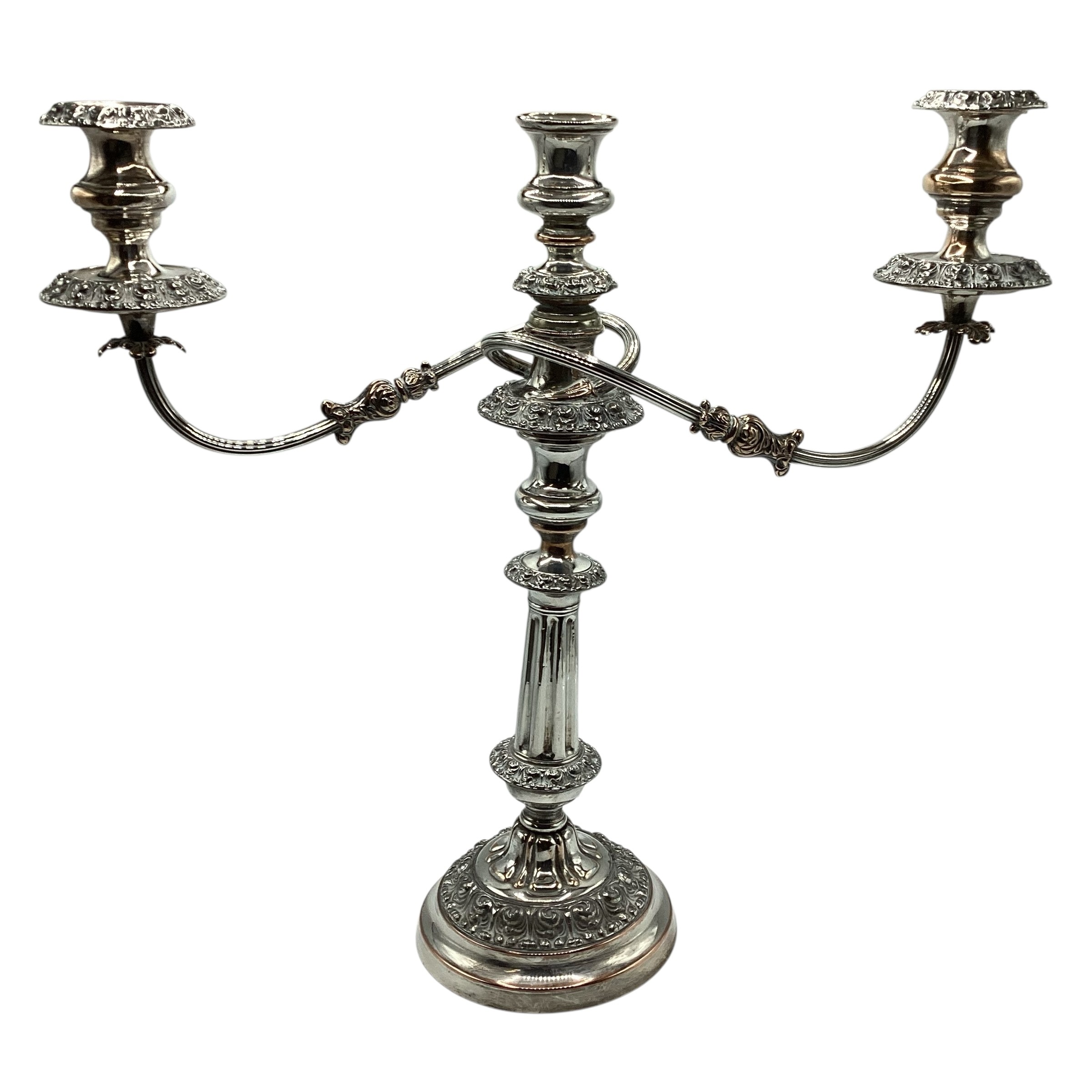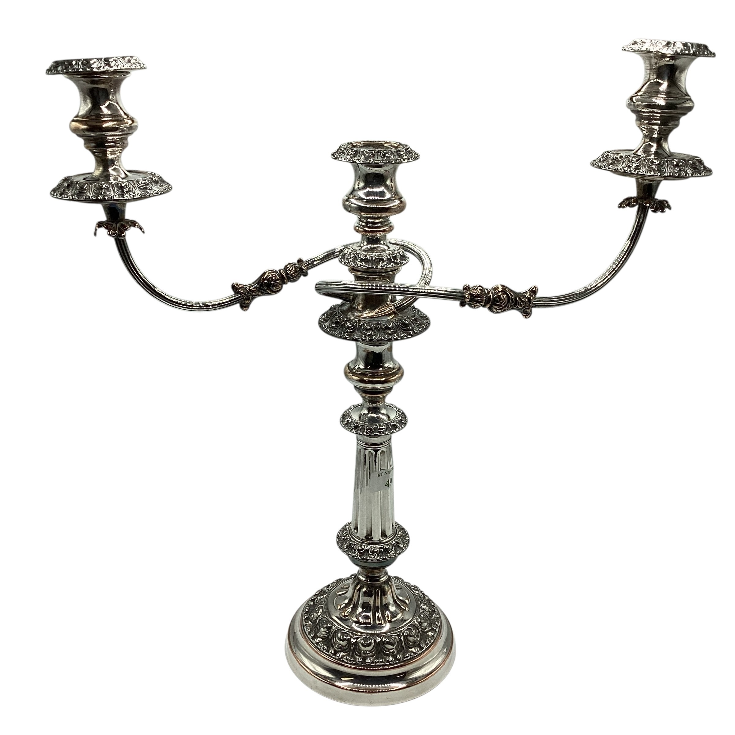 Matched pair of two branch silver plated table candelabra. 50 cm H x 46 cm W