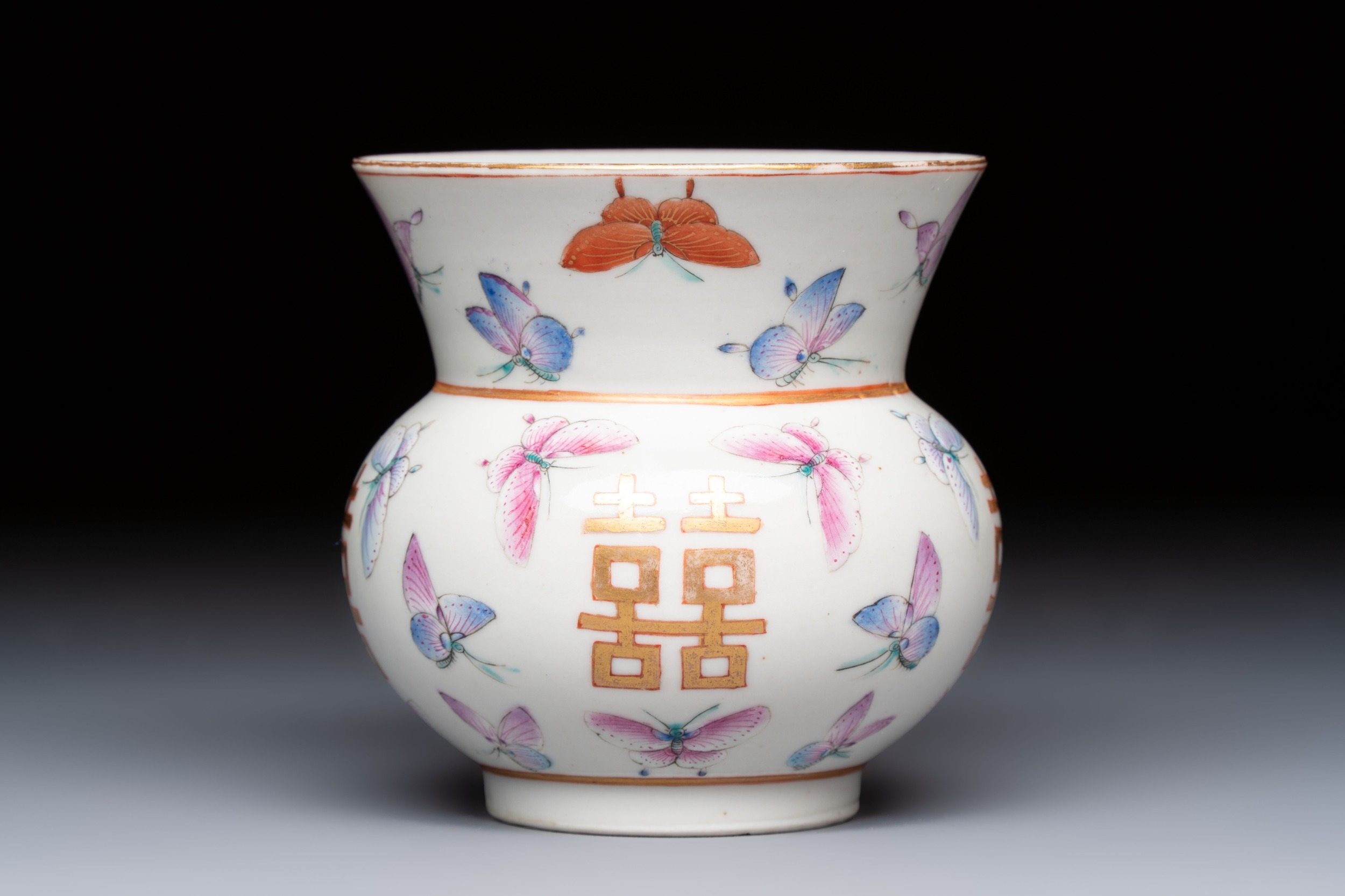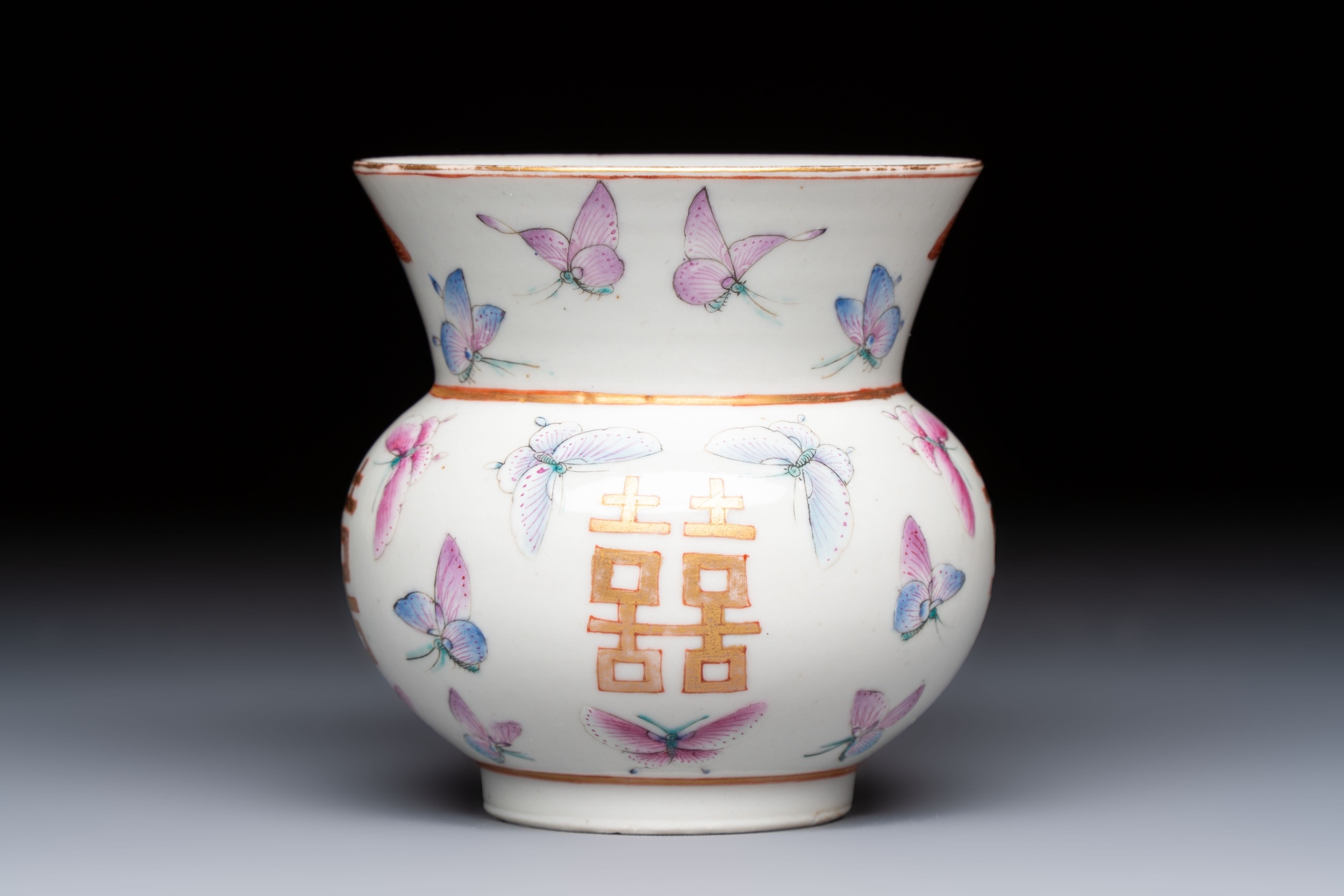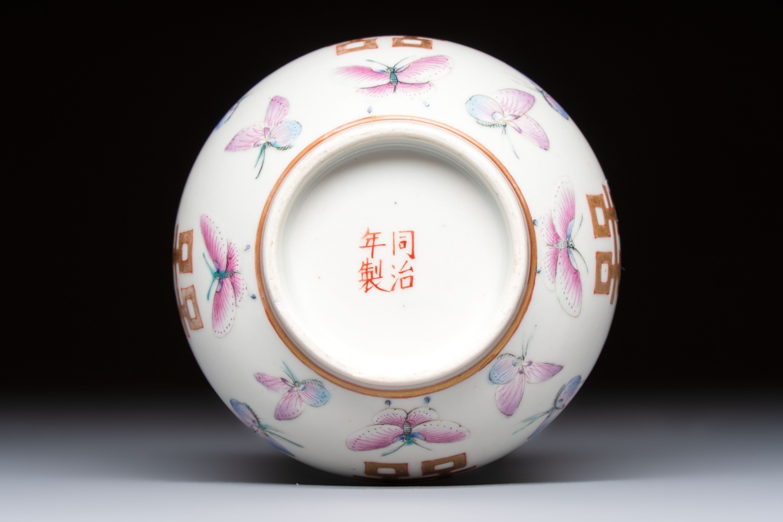 A Chinese famille rose 'Butterflies' spittoon, Tongzhi mark and of the period