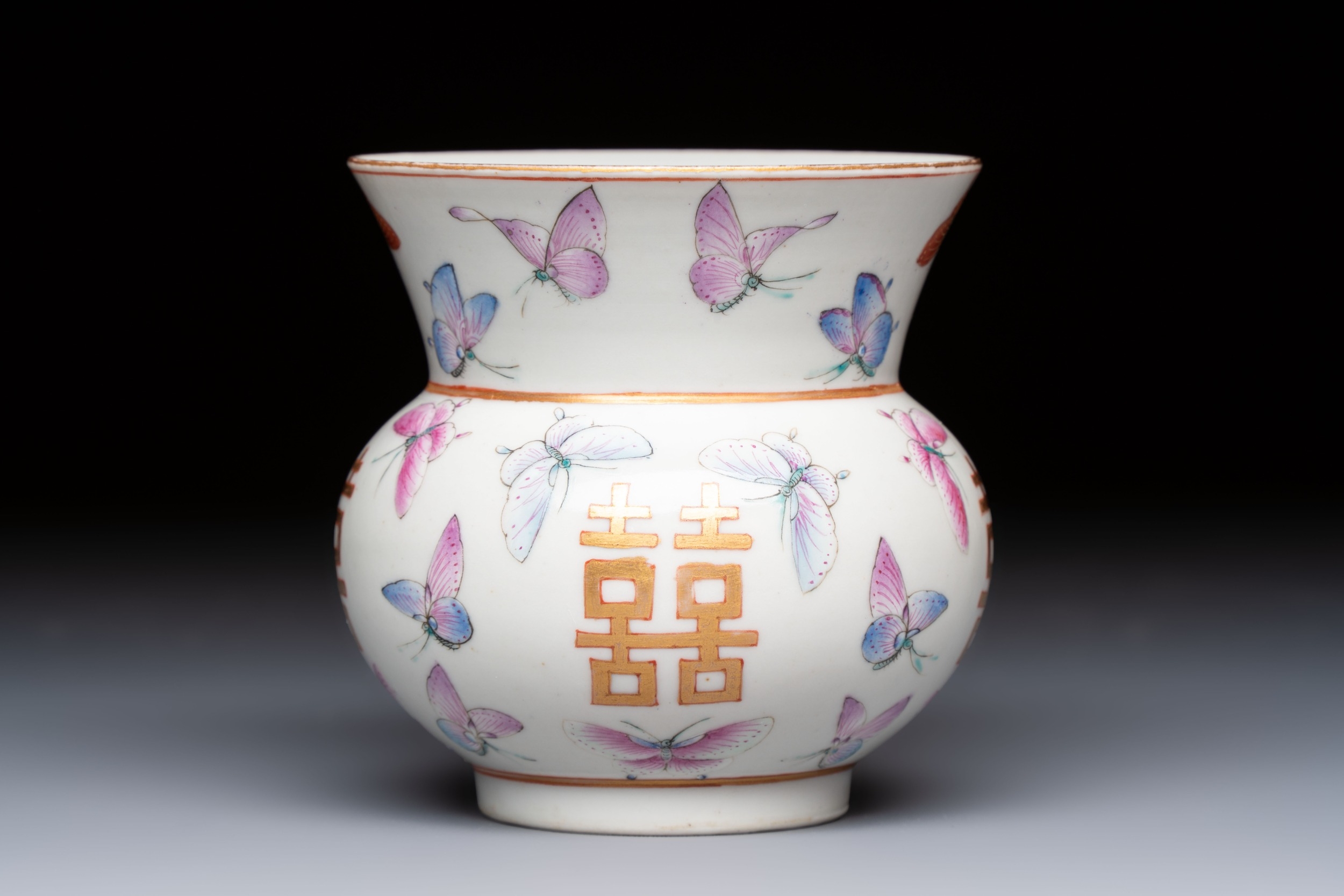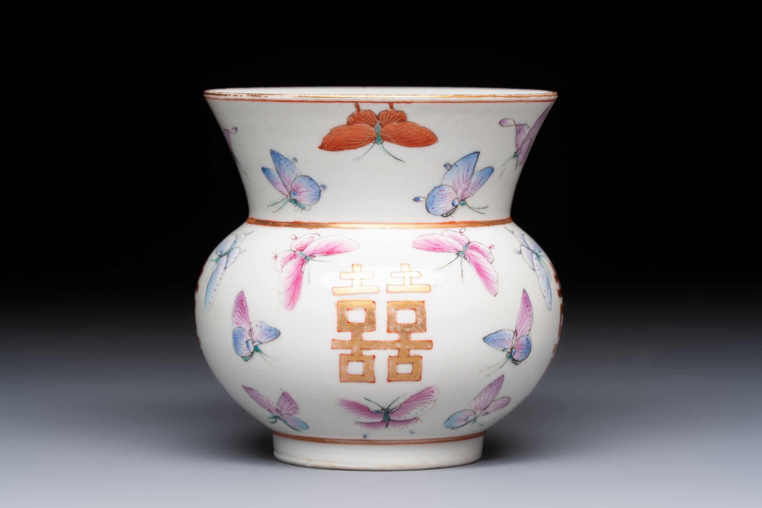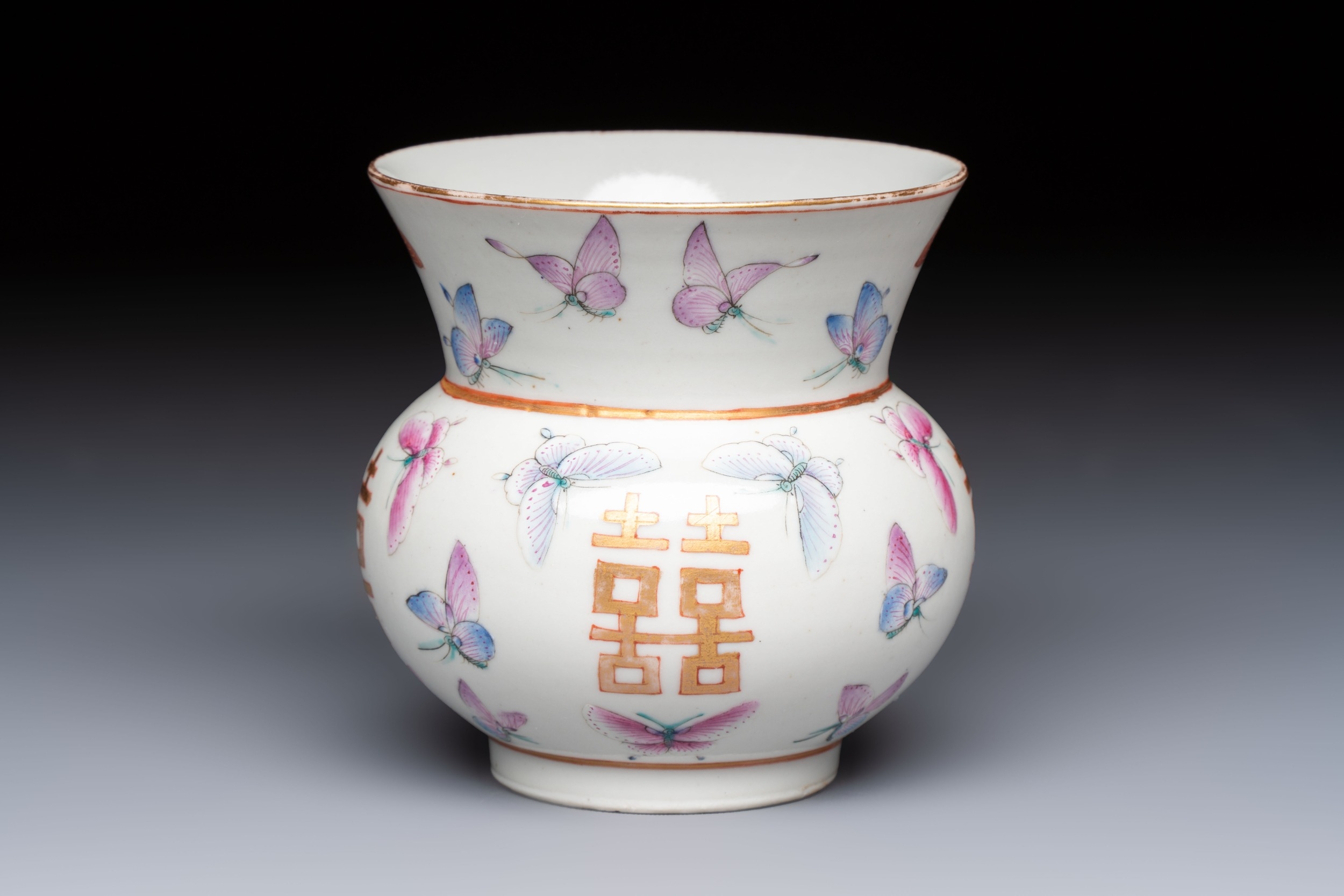 A Chinese famille rose 'Butterflies' spittoon, Tongzhi mark and of the period