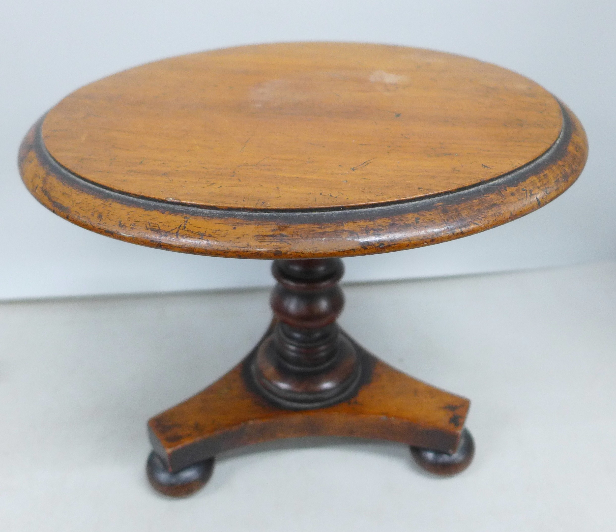 A Victorian mahogany apprentice piece tilt-top breakfast table, 25.5cm diameter