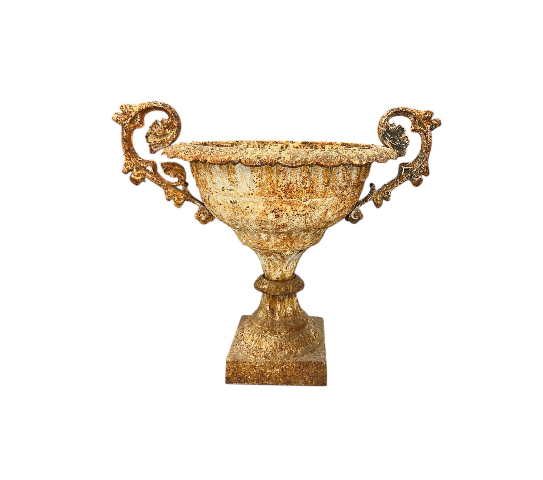 A cast iron Campana twin-handled urn of classical design, 48cms diameter.
