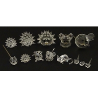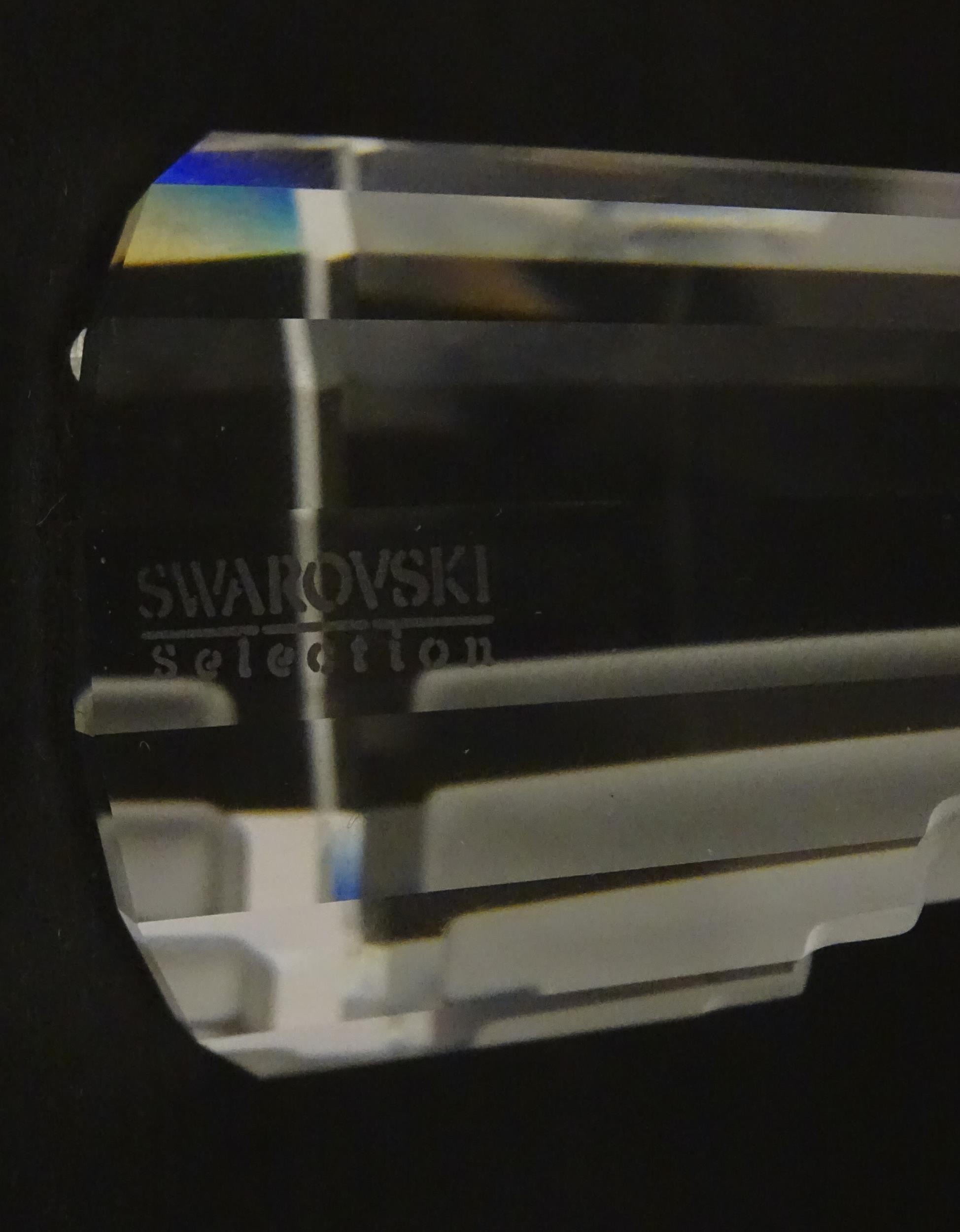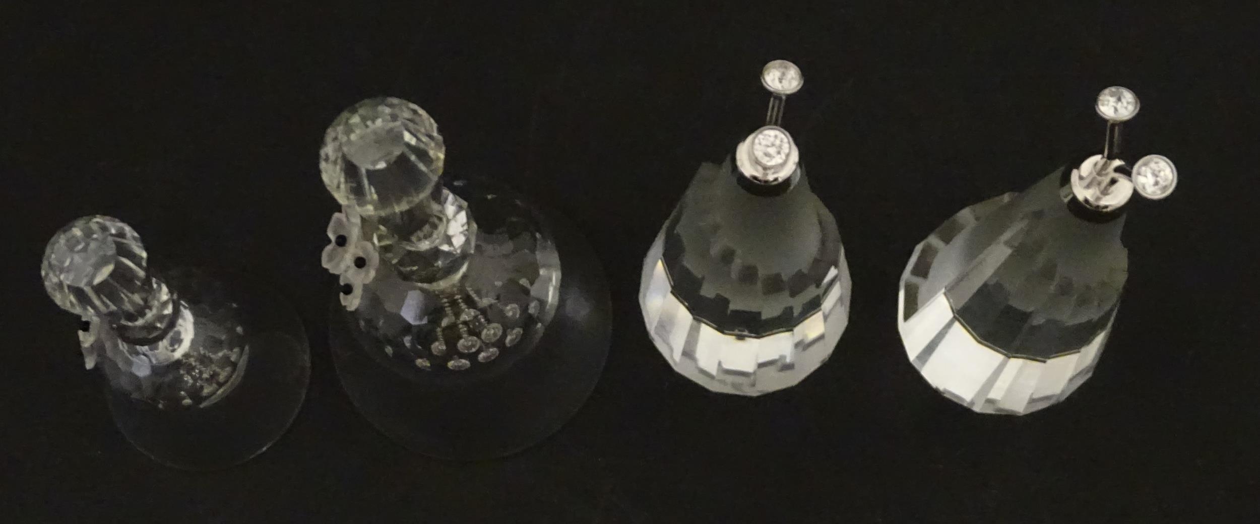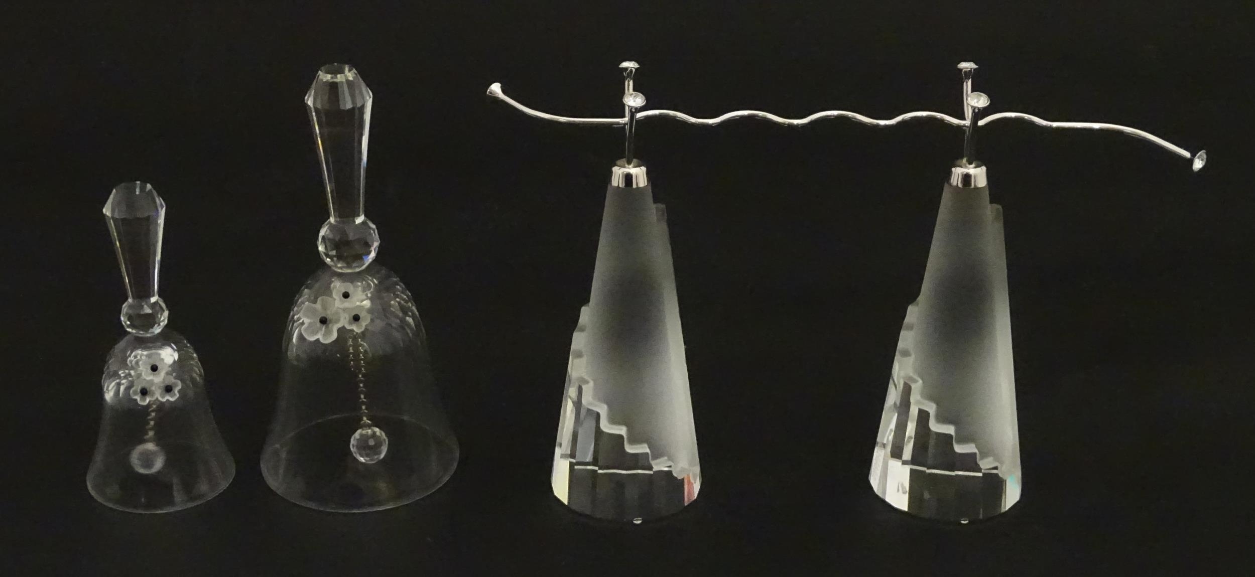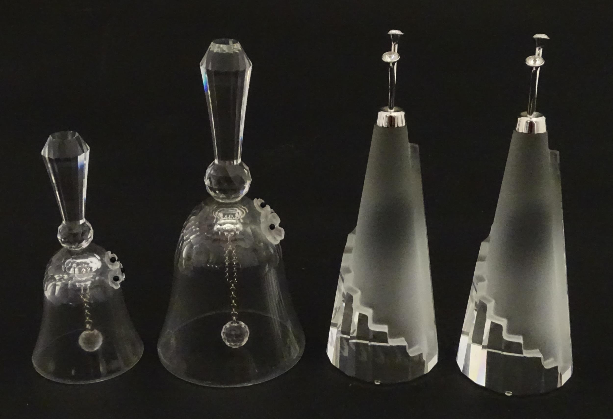 A Swarovski crystal Stalagmite ring holder. Together with two Swarovski crystal bells with flower detail. Largest bell approx. 1 1/2" high