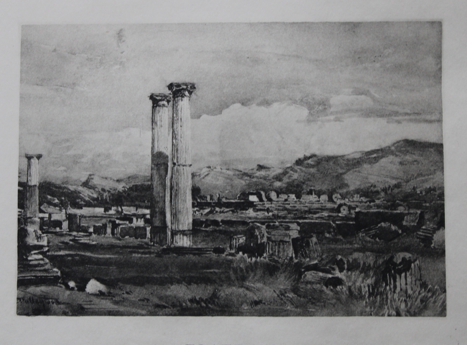 John Fulleylove 1897 - Etching of Palaestra at Olympia. This superb etching is from Pictures of Classic Greek Landscapes and Architecture by John Fulleylove RI. Published by JM Dent & Co, London 1897.