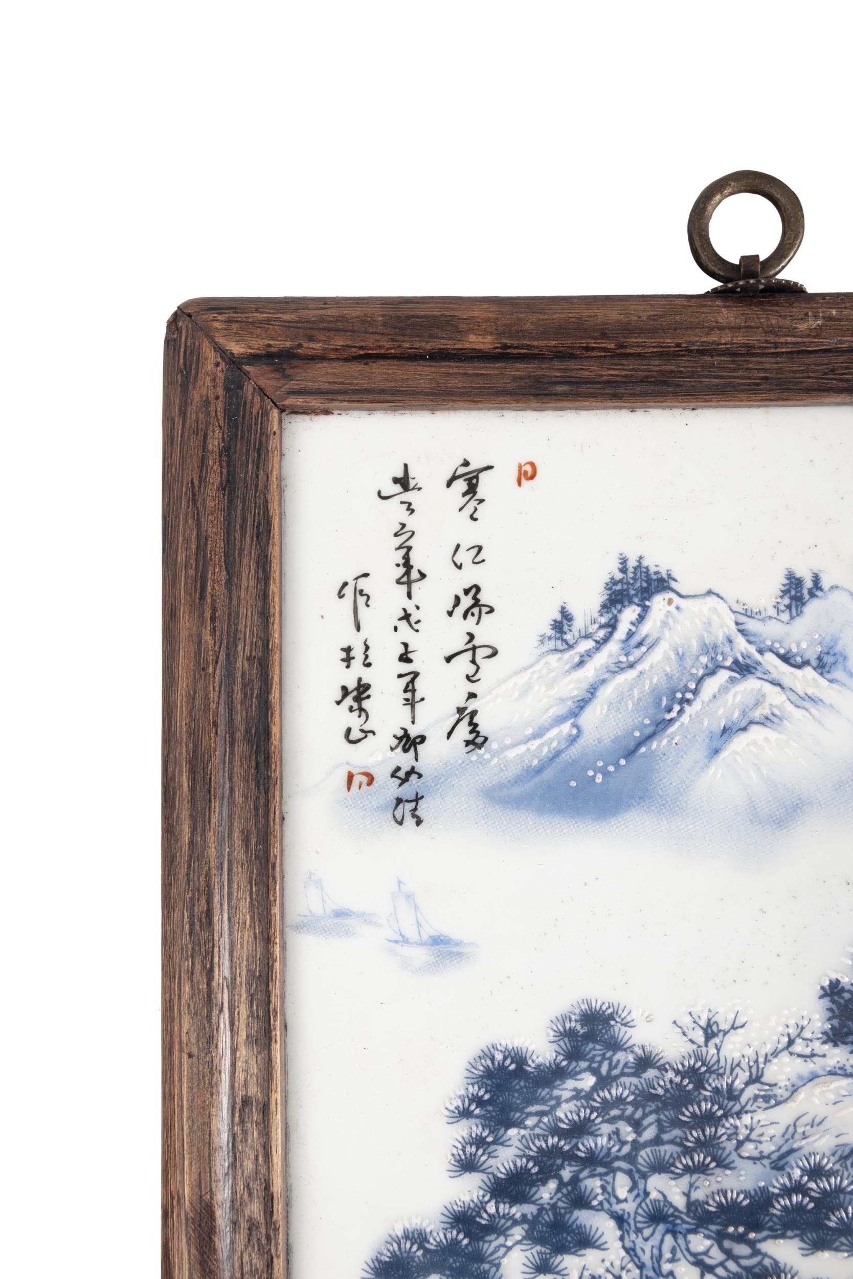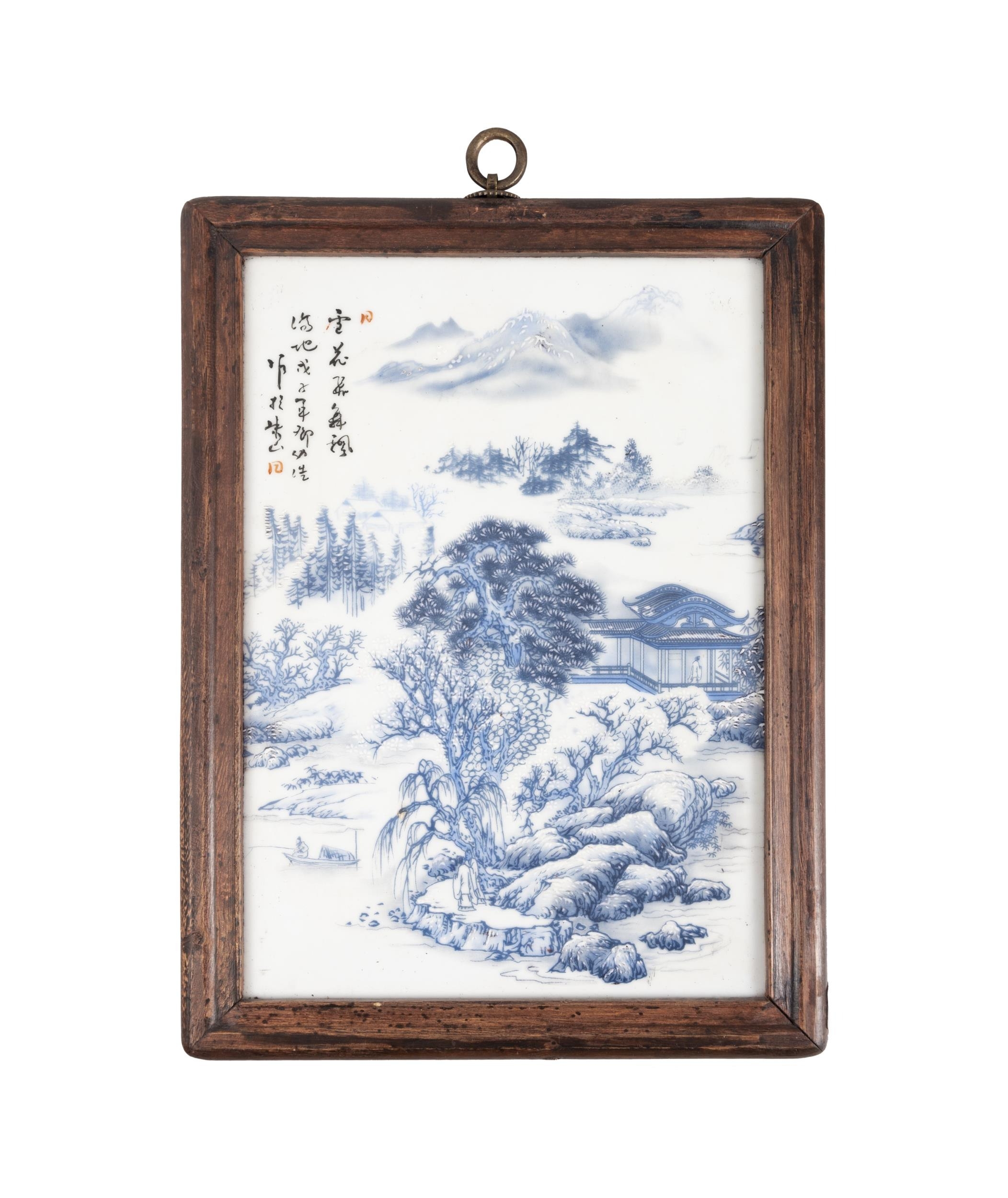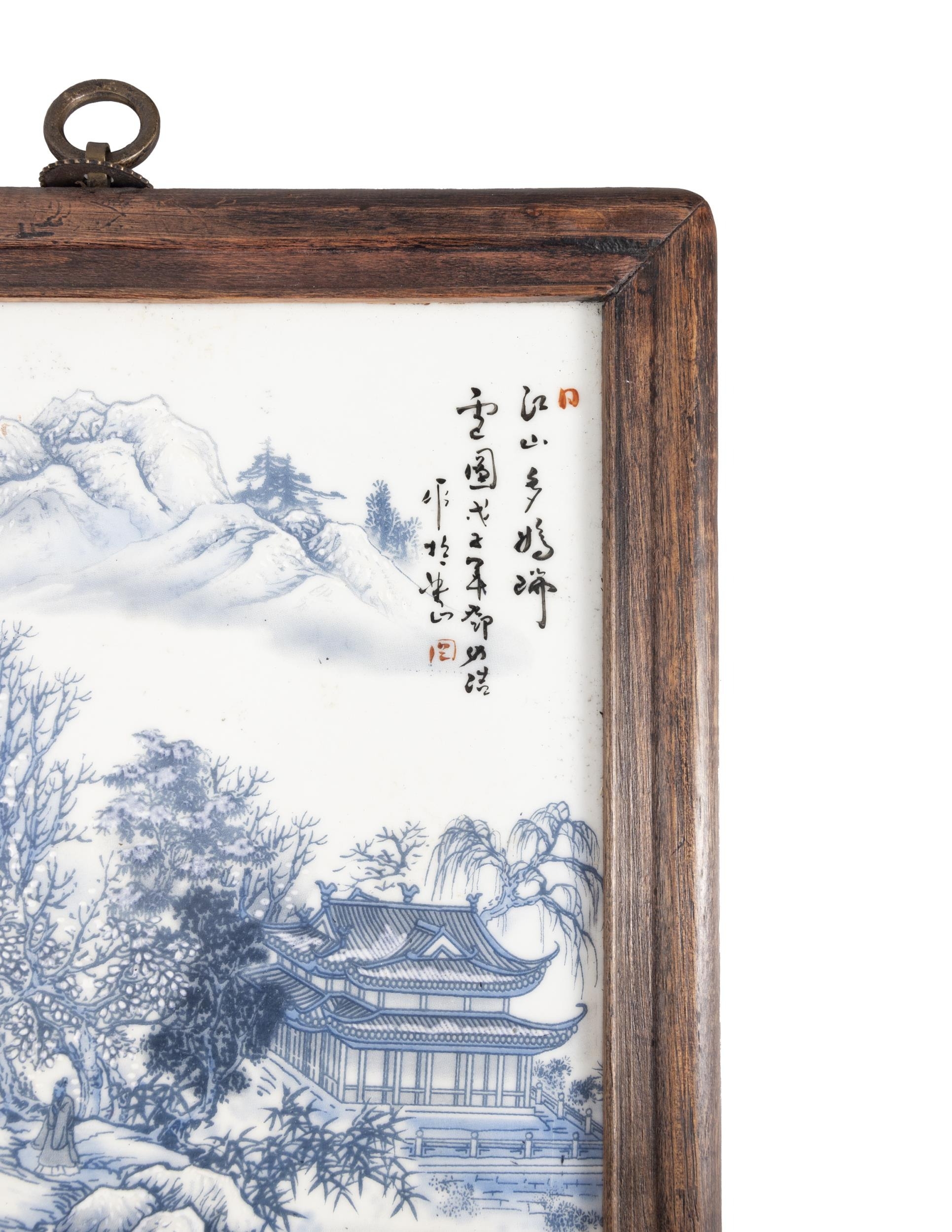 A SET OF FOUR FRAMED BLUE AND WHITE LANDSCAPE PANELS ??????? ???????????? China, second half of 20th century Size: 29 x 20cm (each) (4)