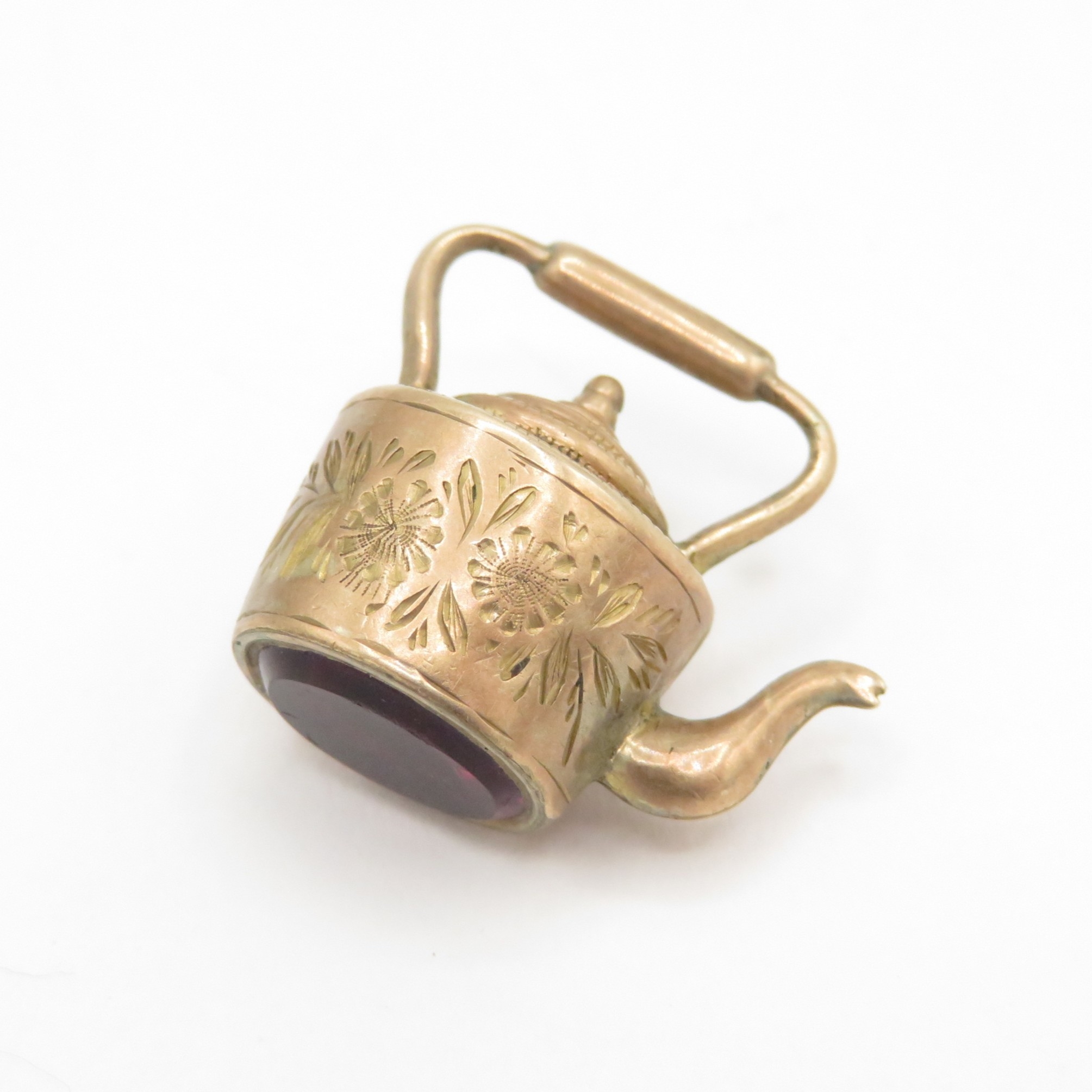 9ct gold red paste kettle charm (1.8g)
