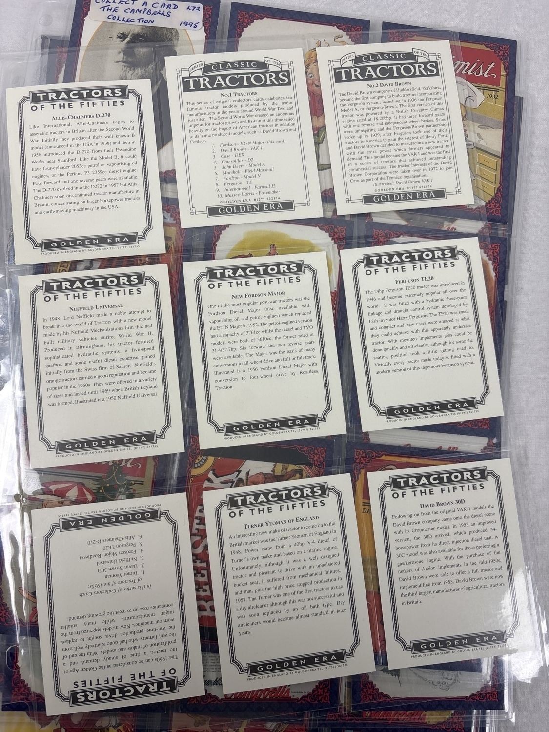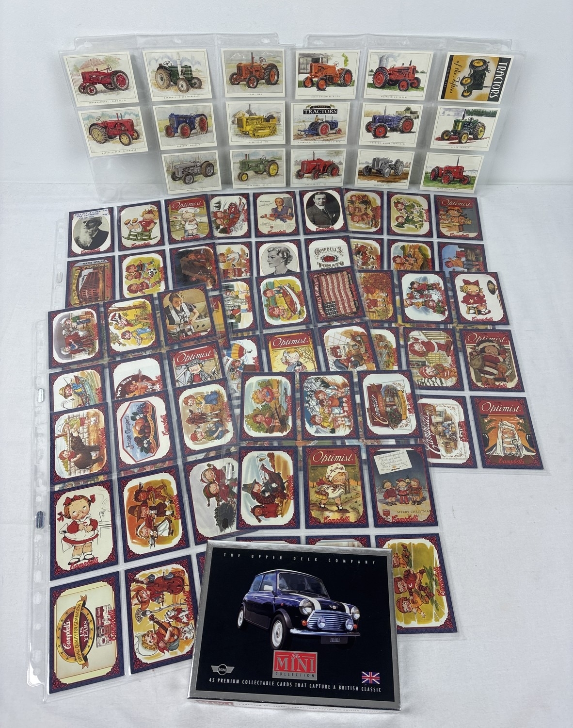 A collection of trading cards to include The Campbell's Collection by Collect-A-Card 1995 complete set (#1-72), The Mini Collection box by Upper Deck 1996, Classic Tractors by Golden Era complete set (#1-10), and 7 Tractors of the Fifties cards by Golden Era.