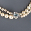 Diamond and Aquamarine Clasped Cultured Saltwater Pearl Necklace