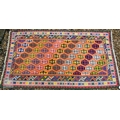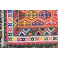 A large orange ground South West Persian Qashqai kilim, geometric design with repeating hexagonal medallions, 240 x 135 cm