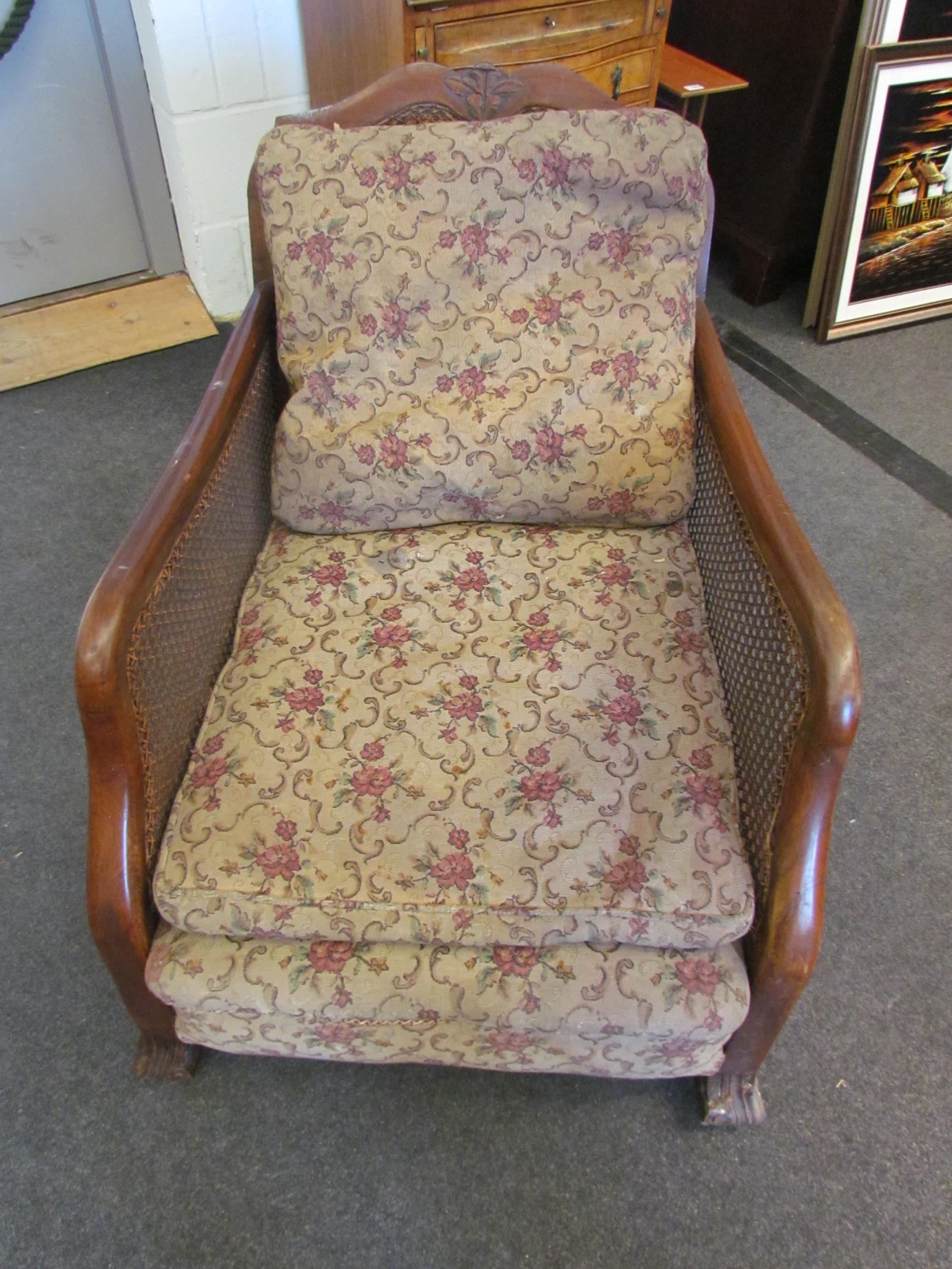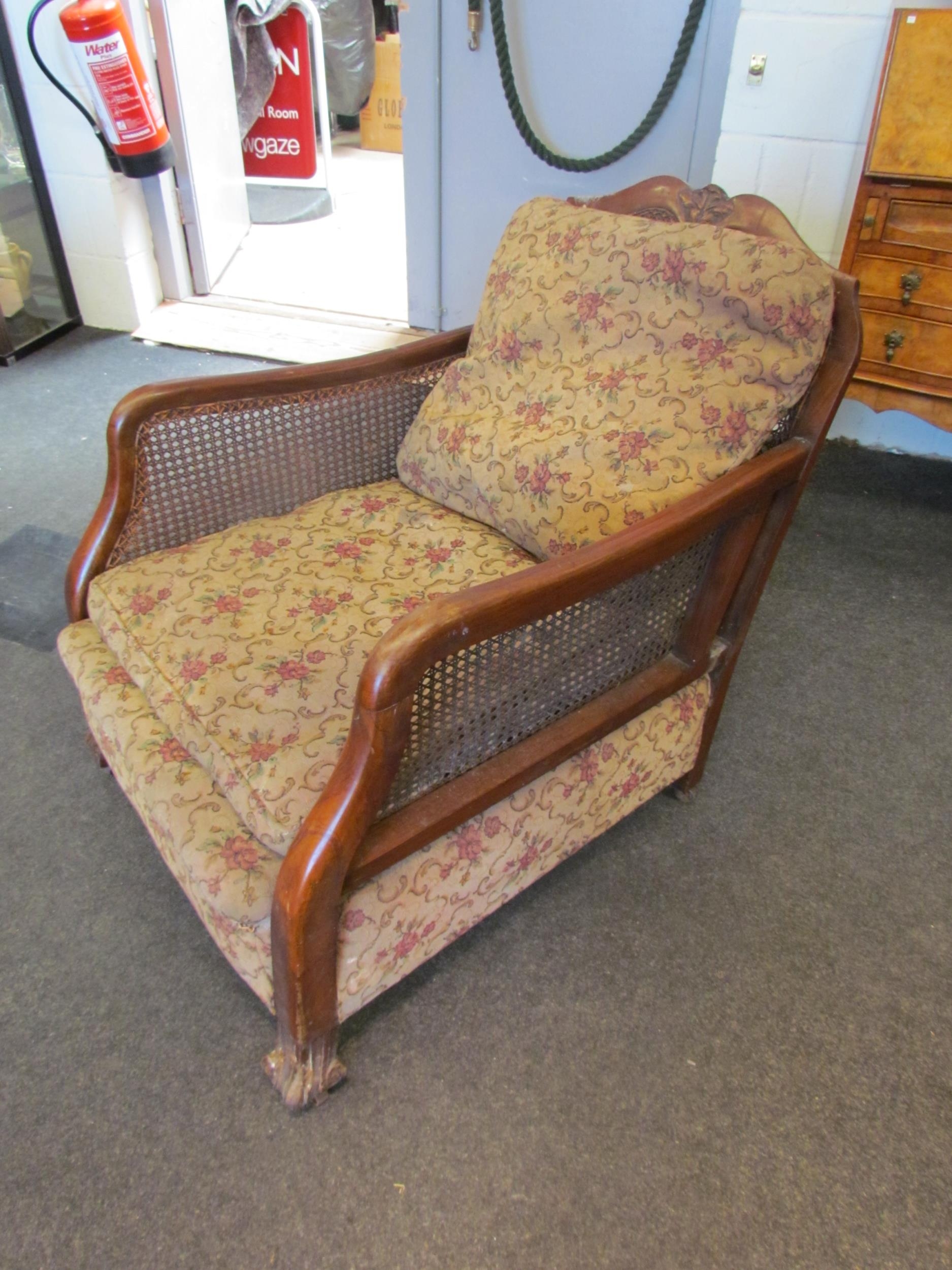 A bergere open armchair on castors, bergere a/f to one side (R) £20