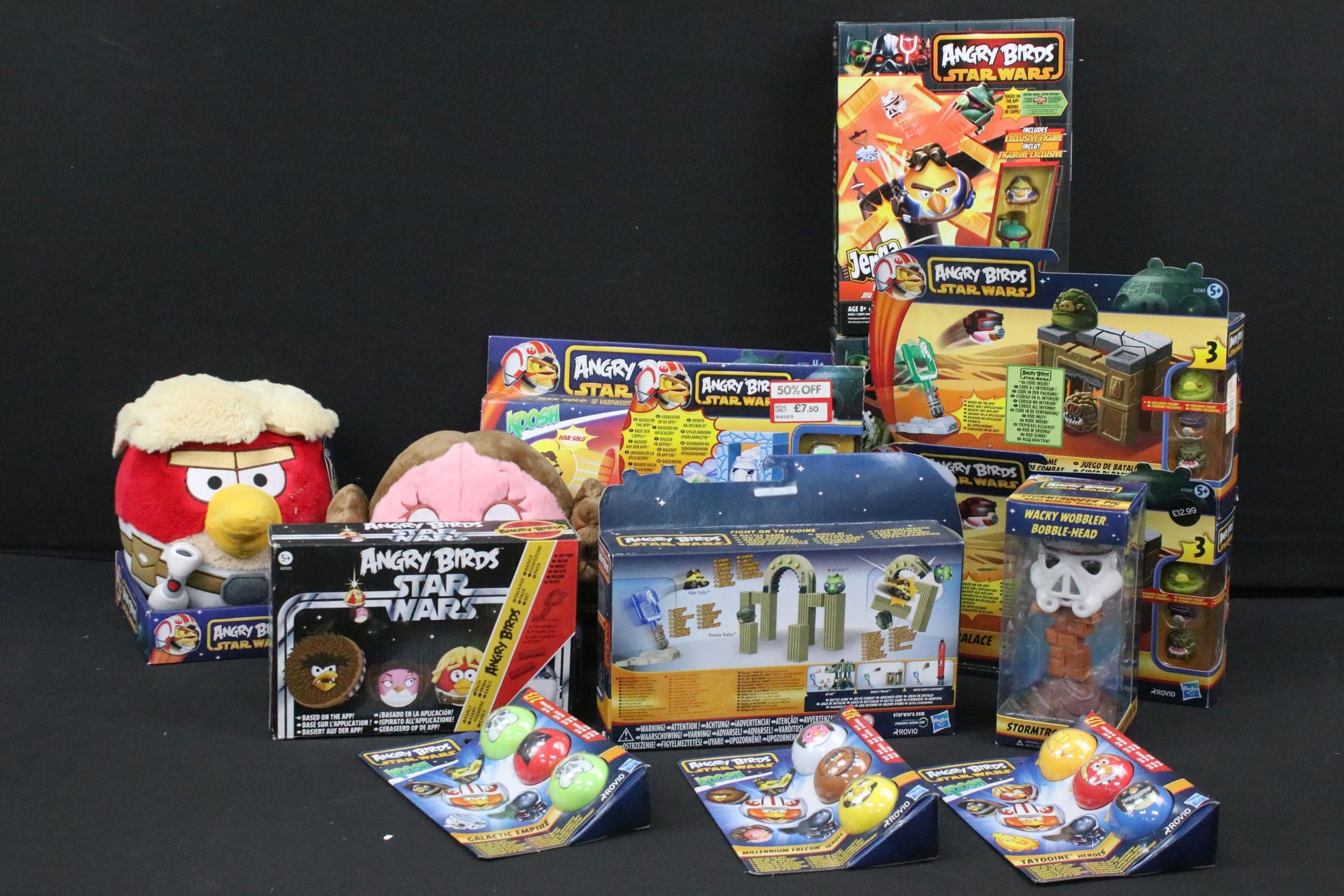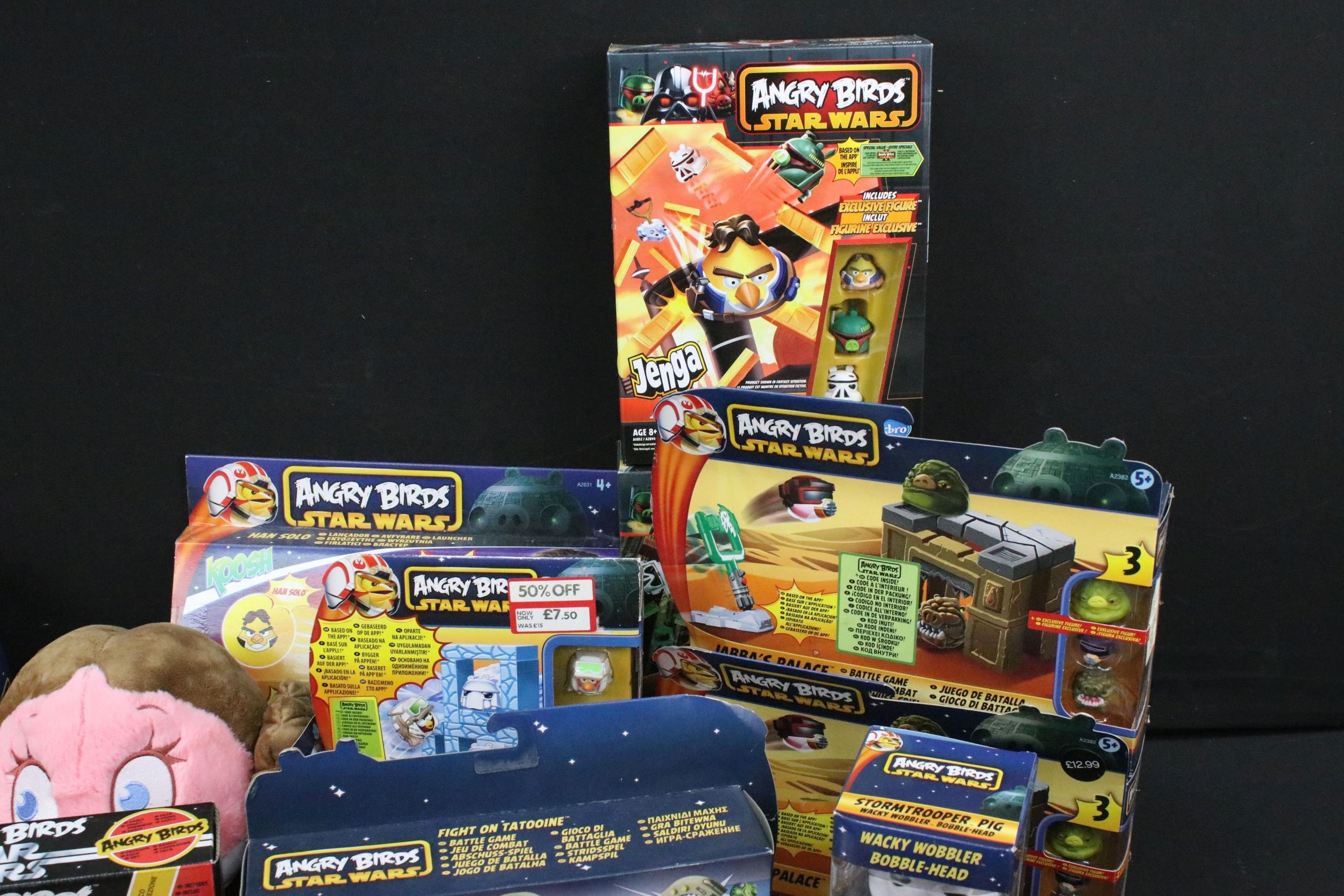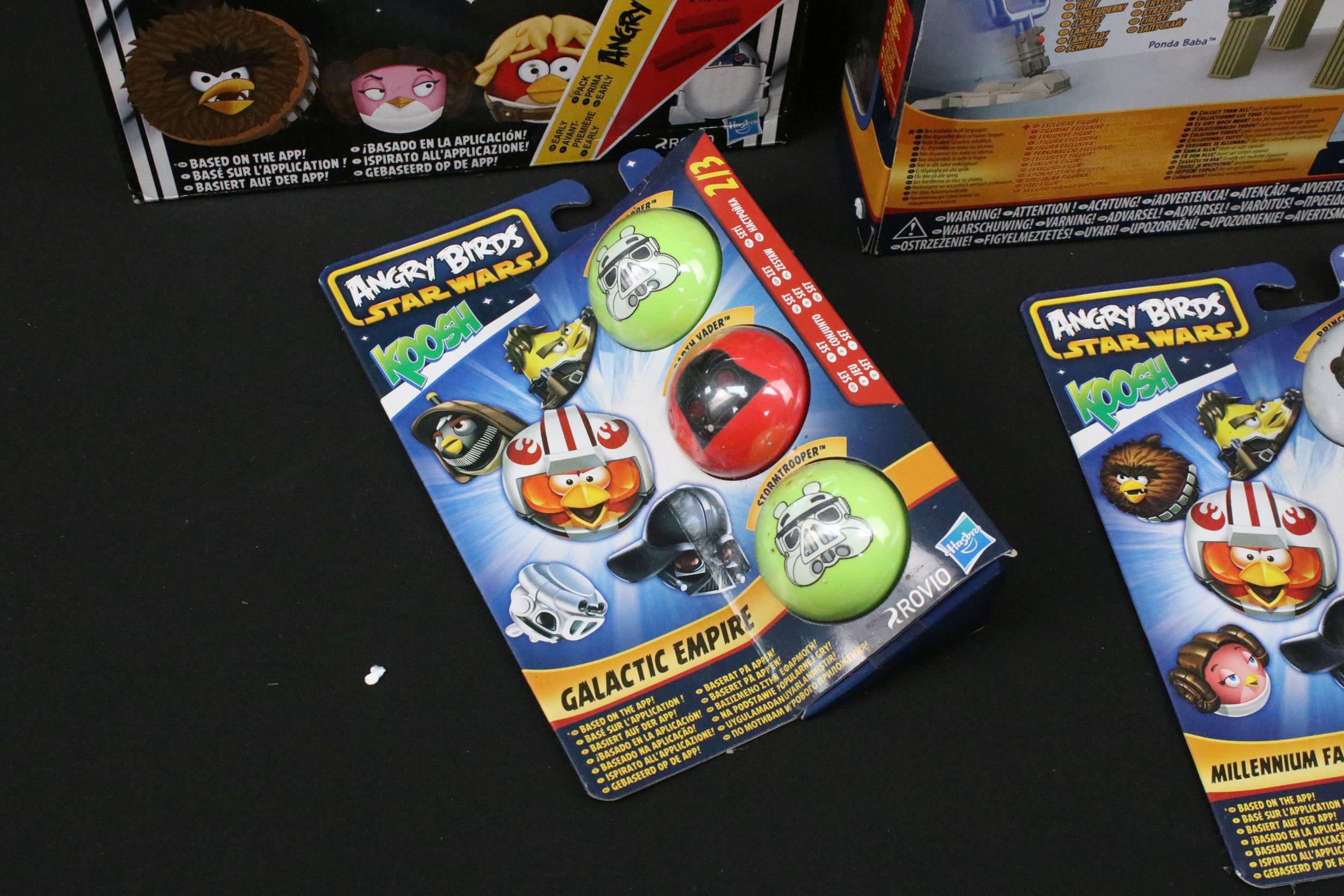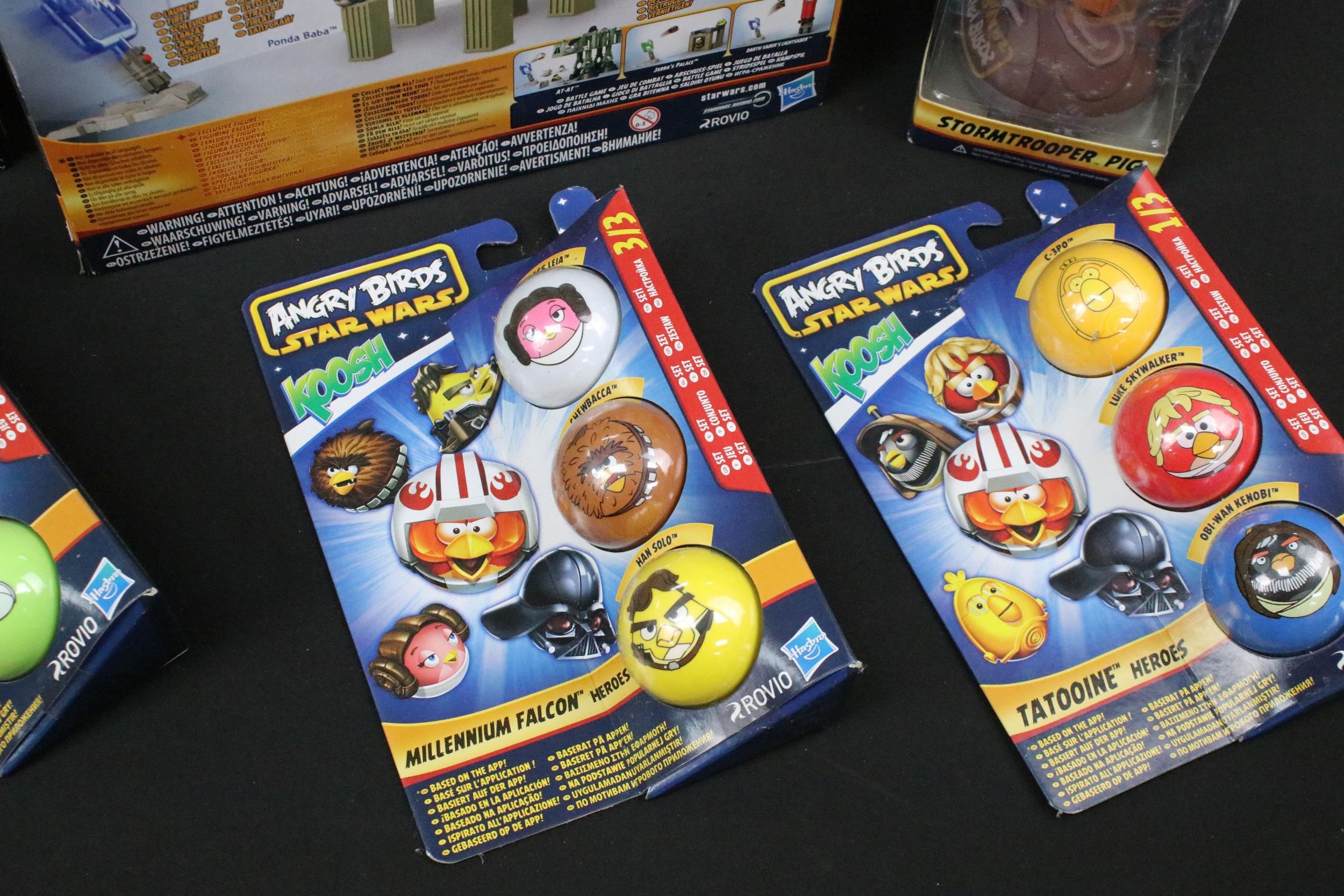 Star Wars - Collection of carded / boxed Angry Birds Star Wars toys and games featuring 3 x Koosh Heroes (Tatooine, Galactic Empire & Millennium Falcon), 6 x Battle Games (Hoth, Bespin & Endor, Fight On Tatooine & 2 x Jabba's Palace), 1 x Han Solo Launcher, etc