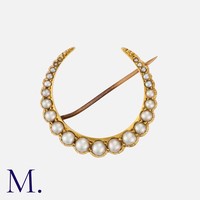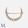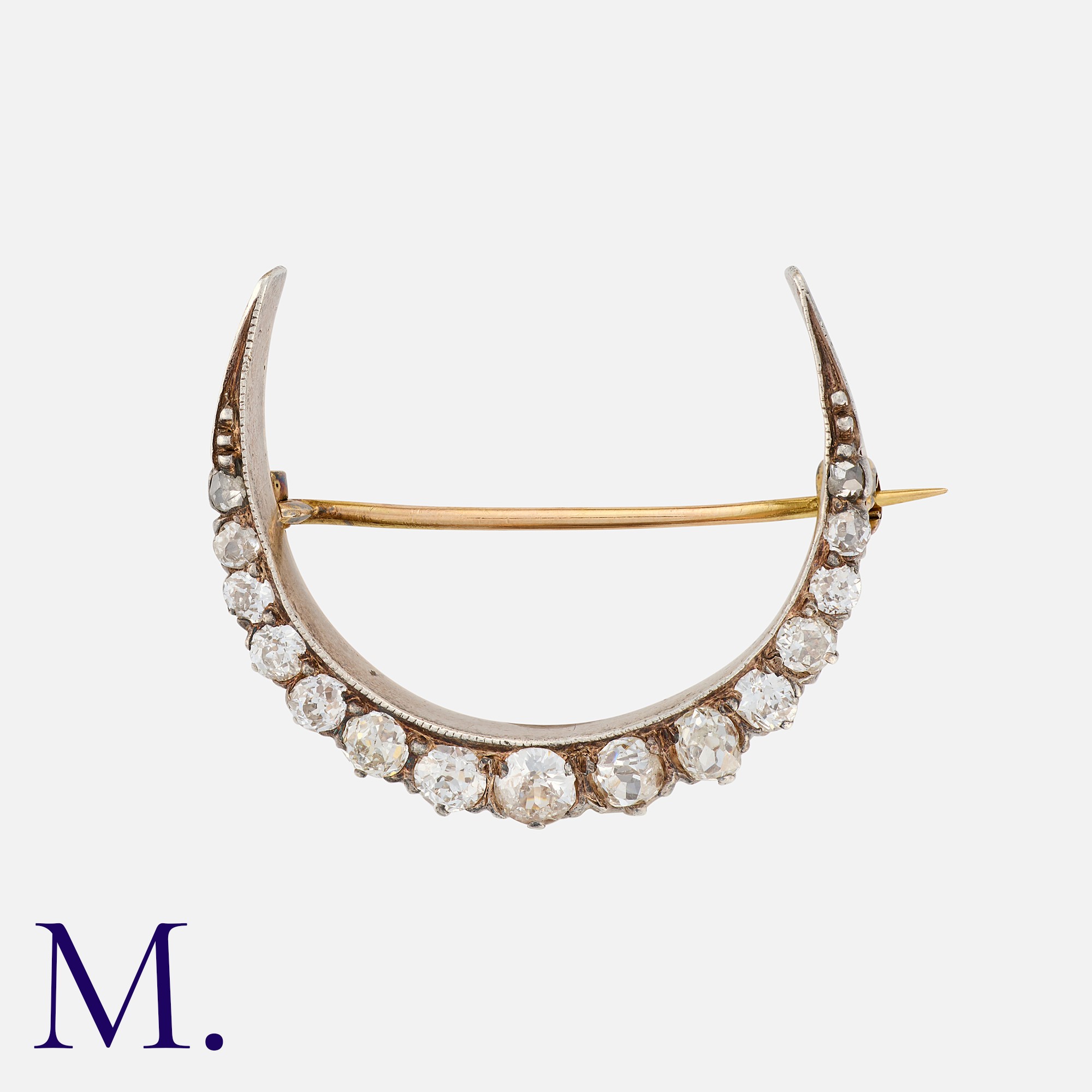 An Antique Diamond Crescent in yellow gold and silver, set with old cut diamonds weighing approx. 1.25ct in total.