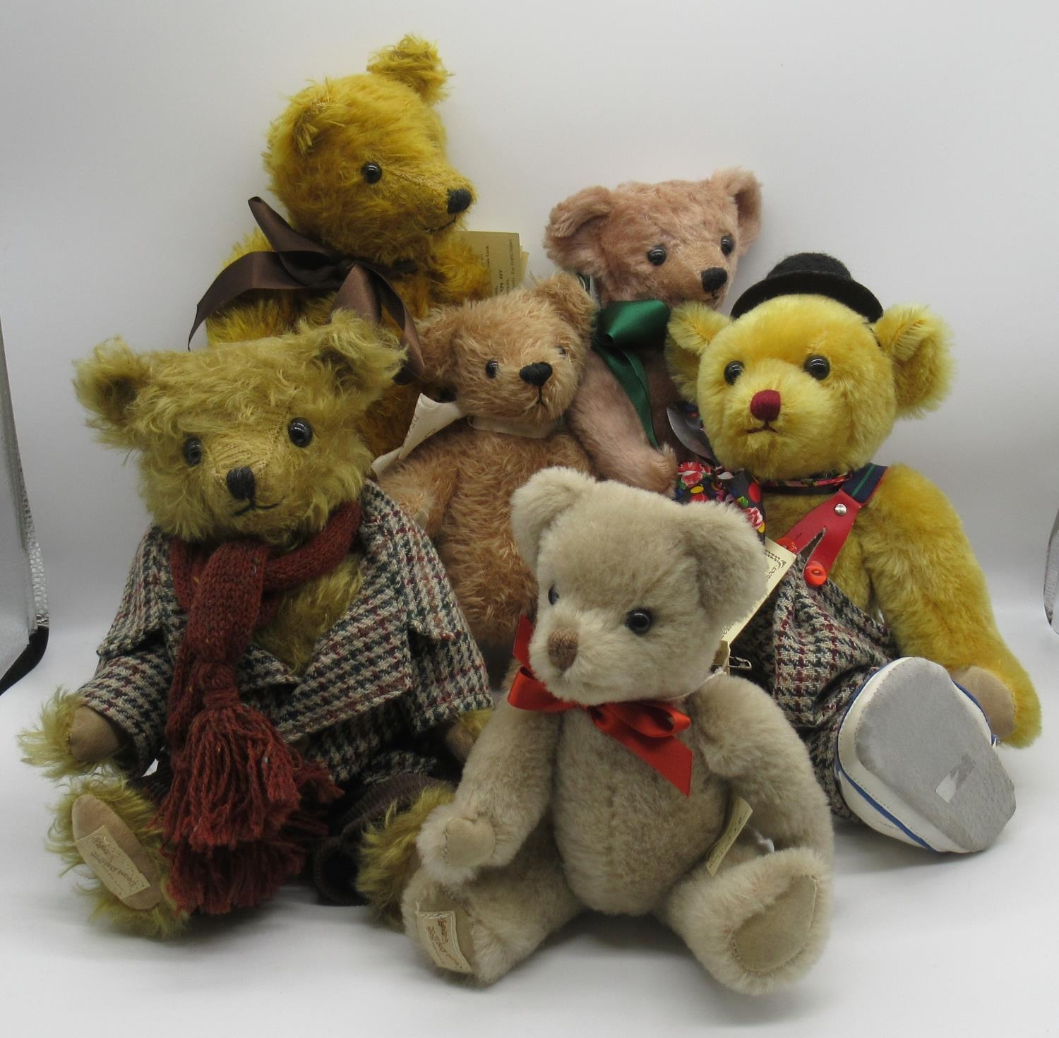 Collection of Limited Edition Deans teddy bears including Ronny, Horace, Tatters, Herbert, Stanley and Joey the Clown (6)