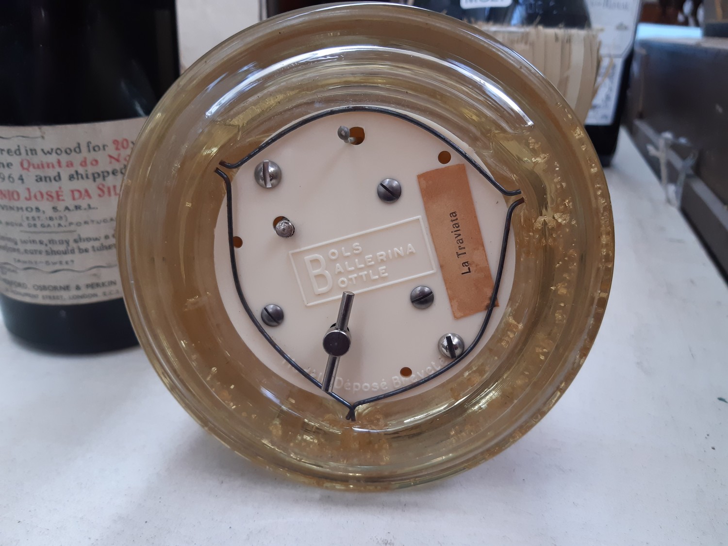 A mid 20th century bottle of Bols Danziger Goldwasser Liqueur in ballerina bottle with 'La Traviata' label to music box base, fill level - in neck
