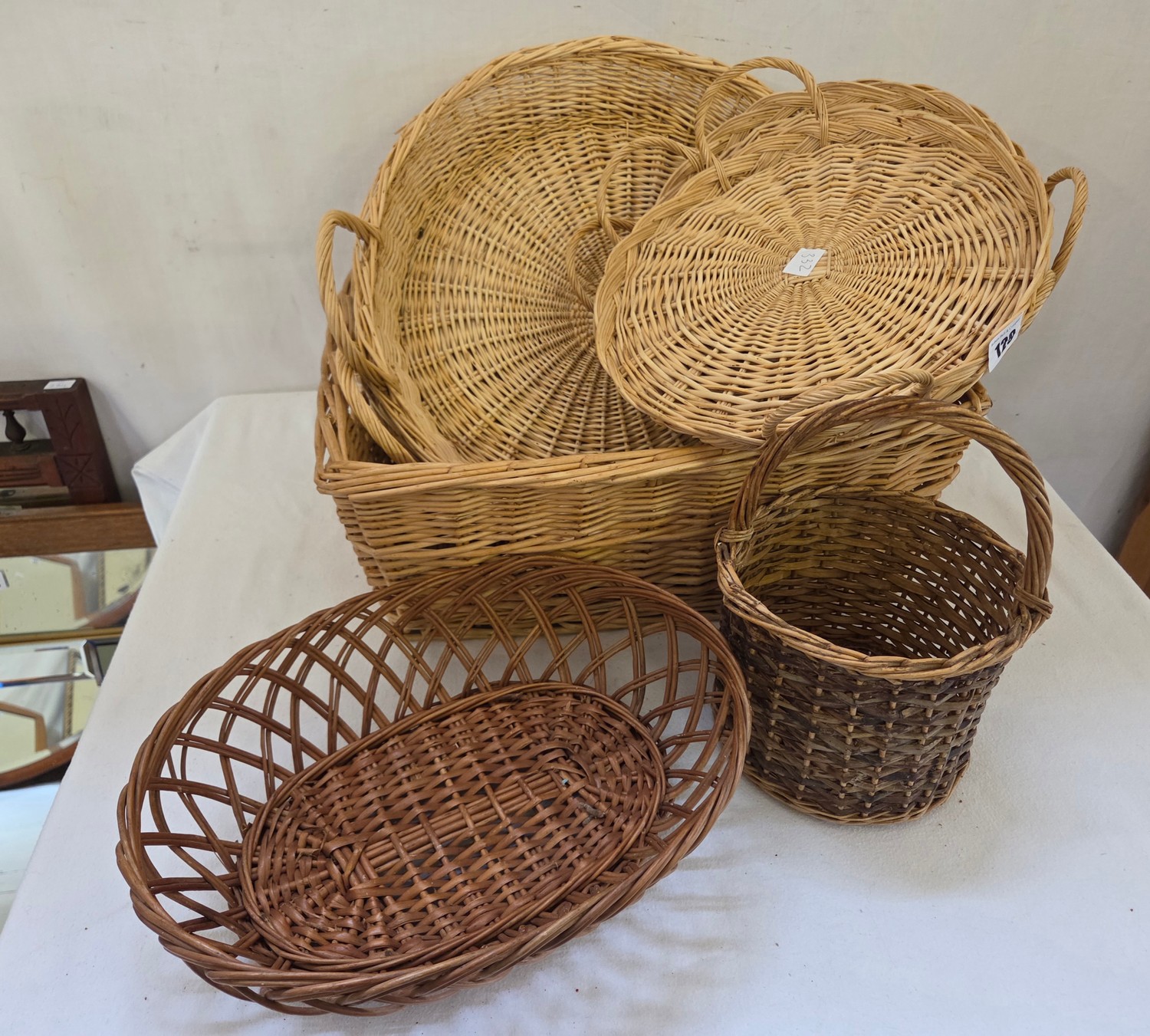 Qty of wicker baskets and trays
