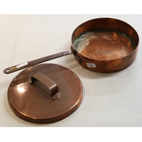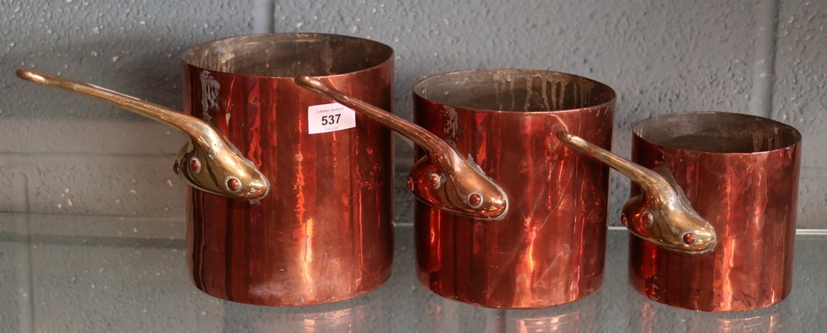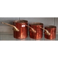 3 vintage copper and brass handled pans