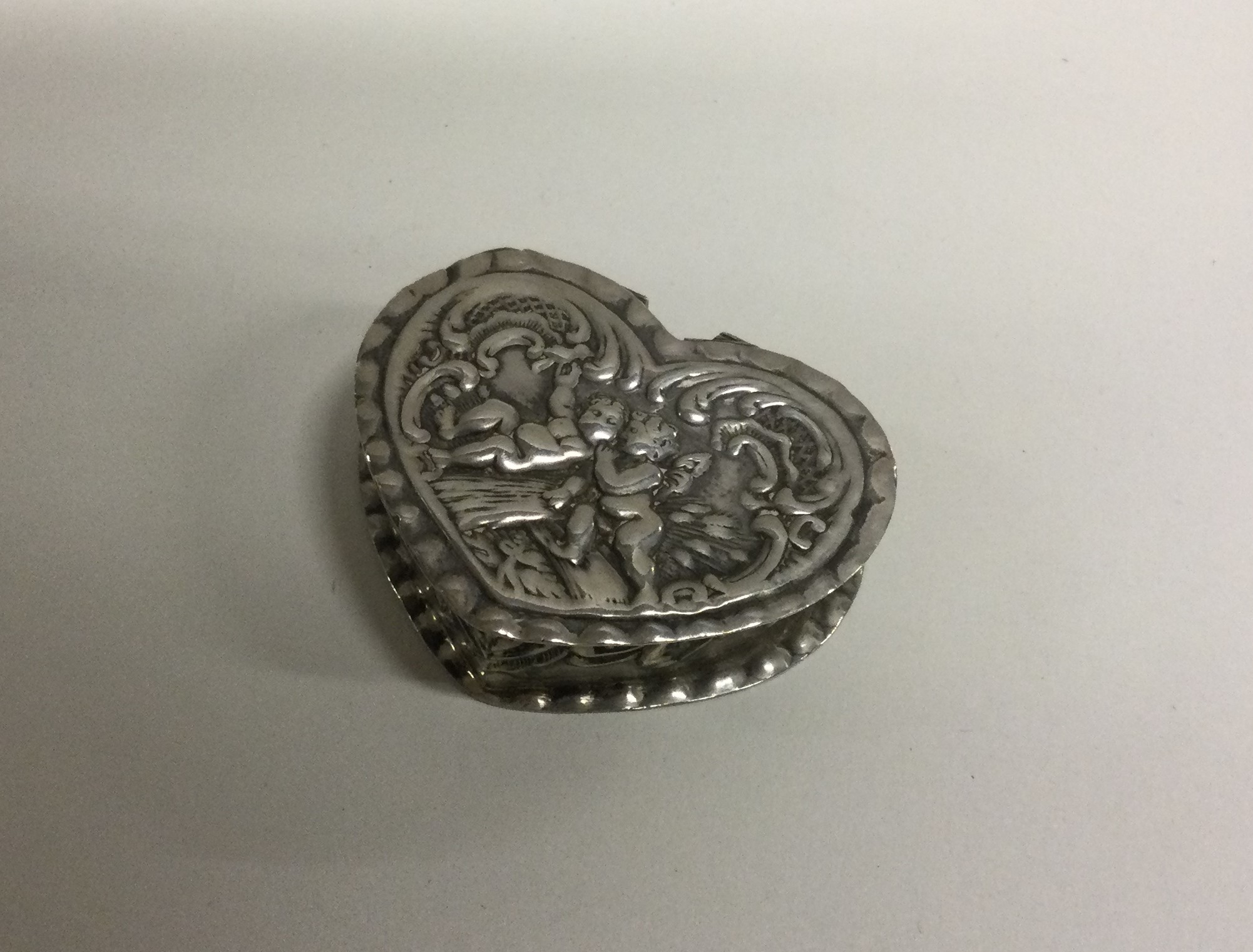A hinged top silver box chased with cherubs. Marked Sterling. Approx. 27 grams. Est. £30 - £50.