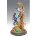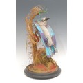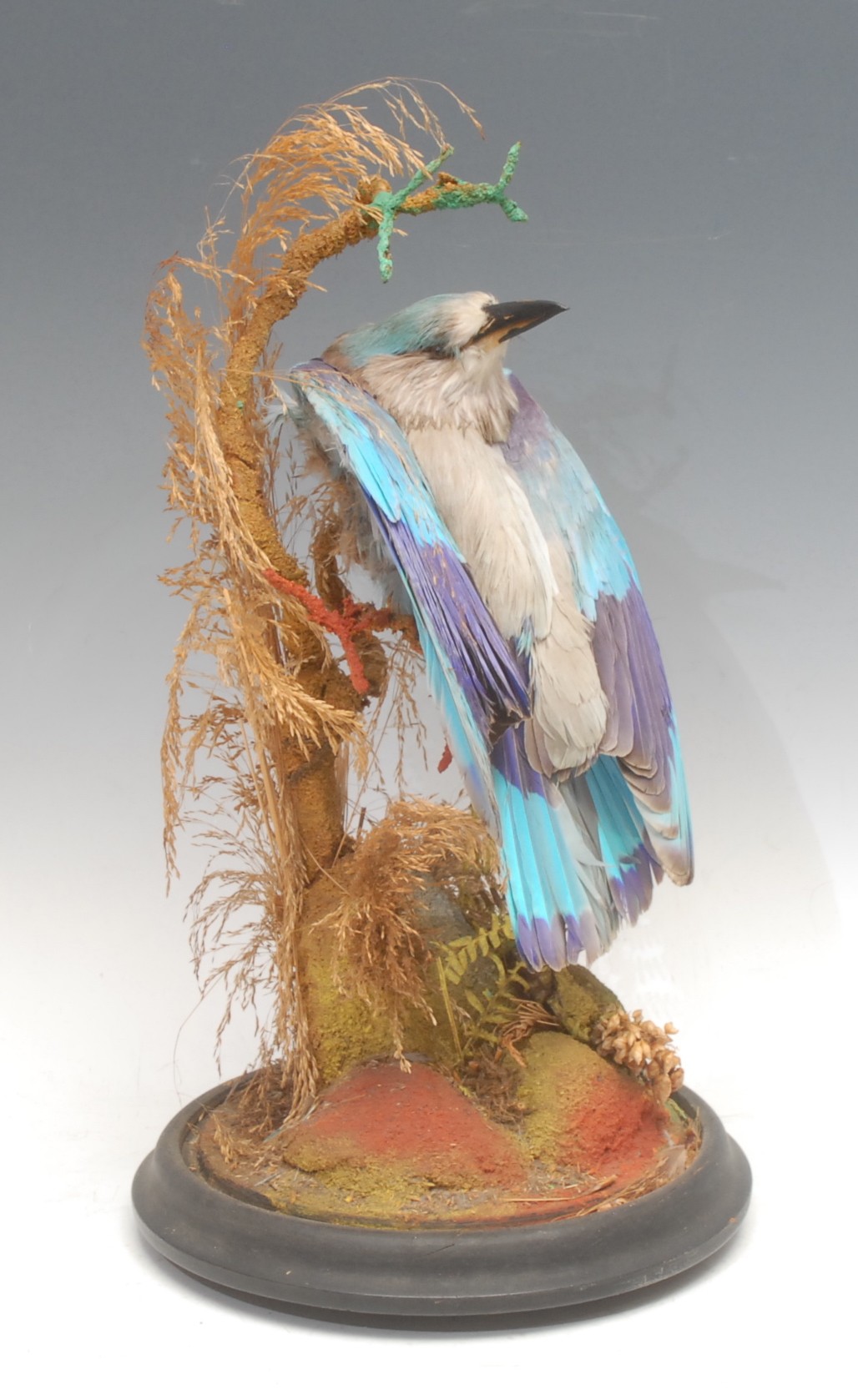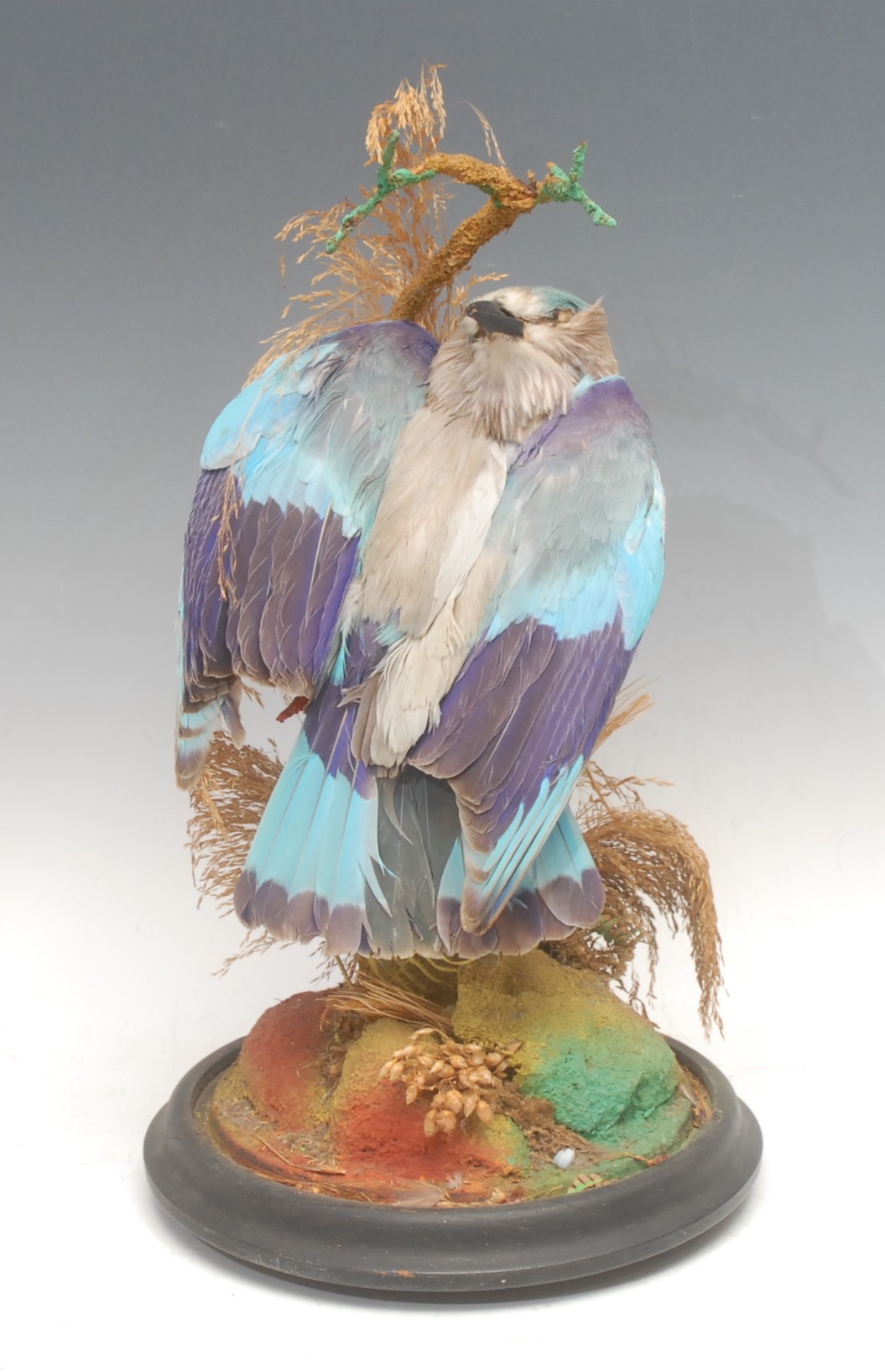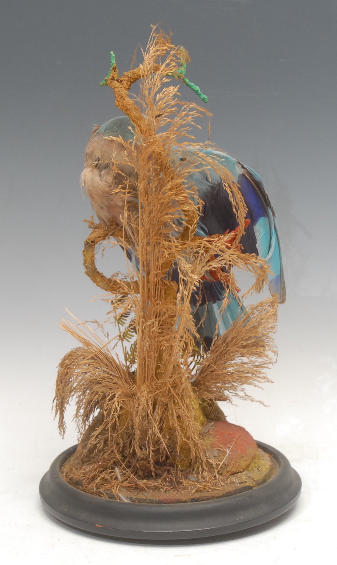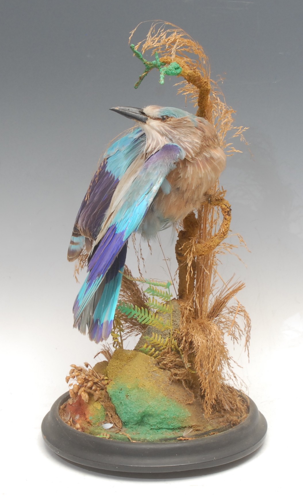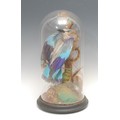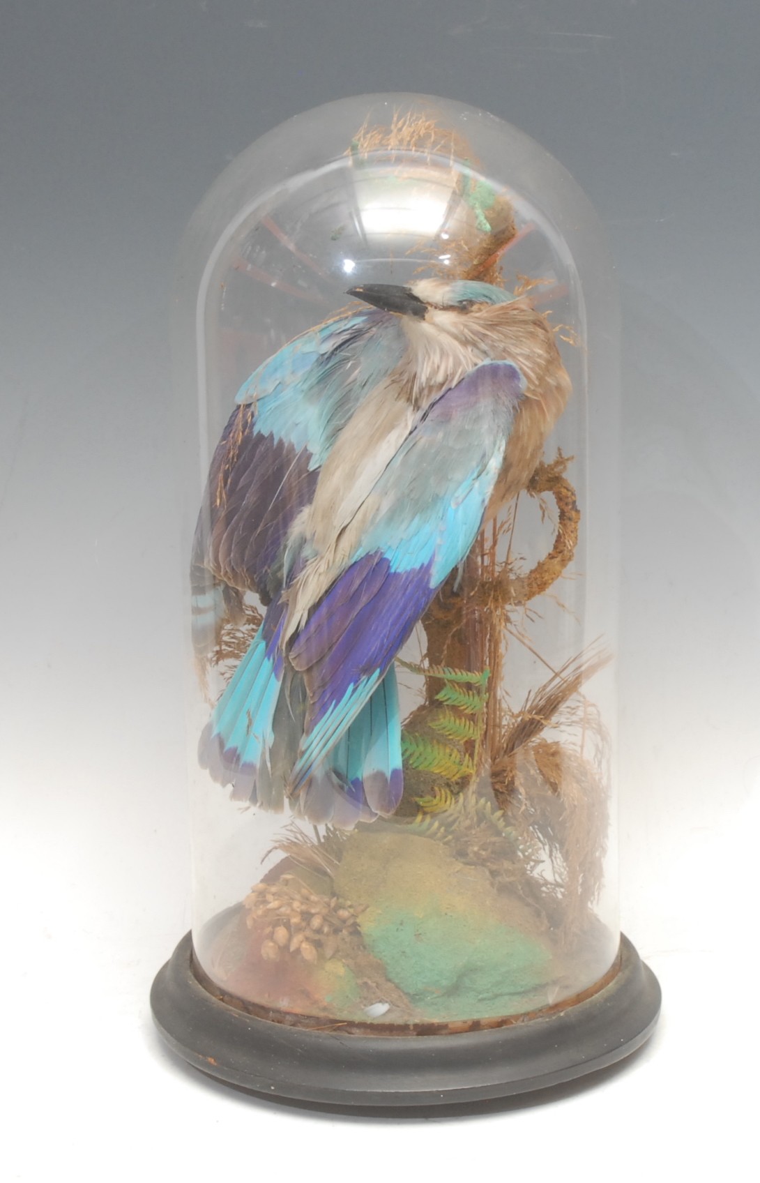 Taxidermy - a European roller bird (coracias garrulus), glass dome, ebonised base, 40cm high overall