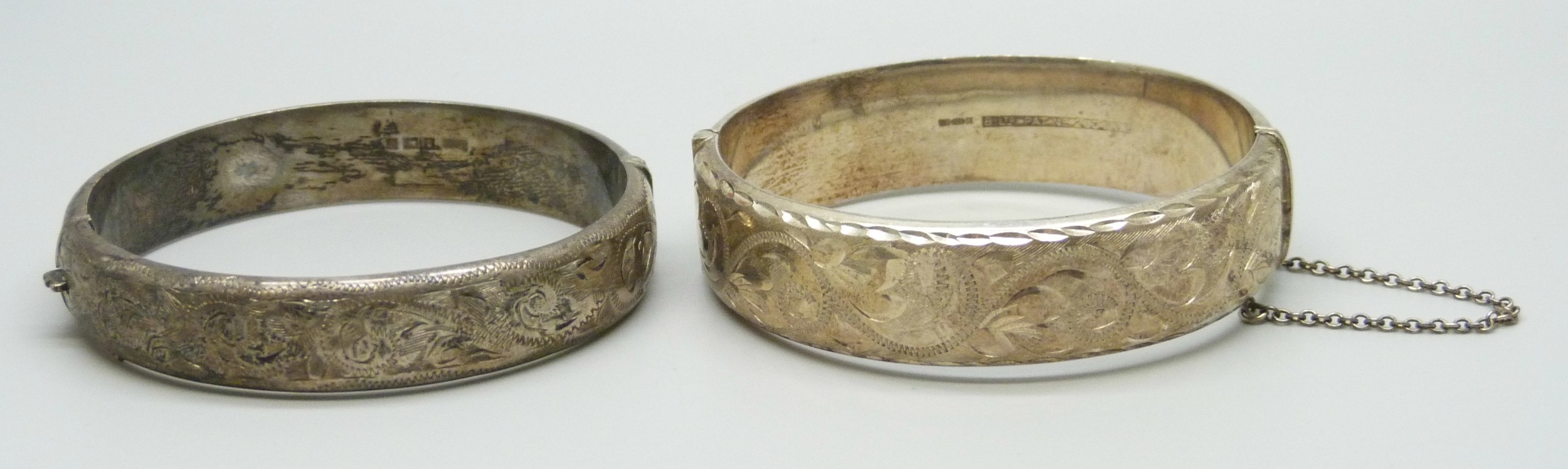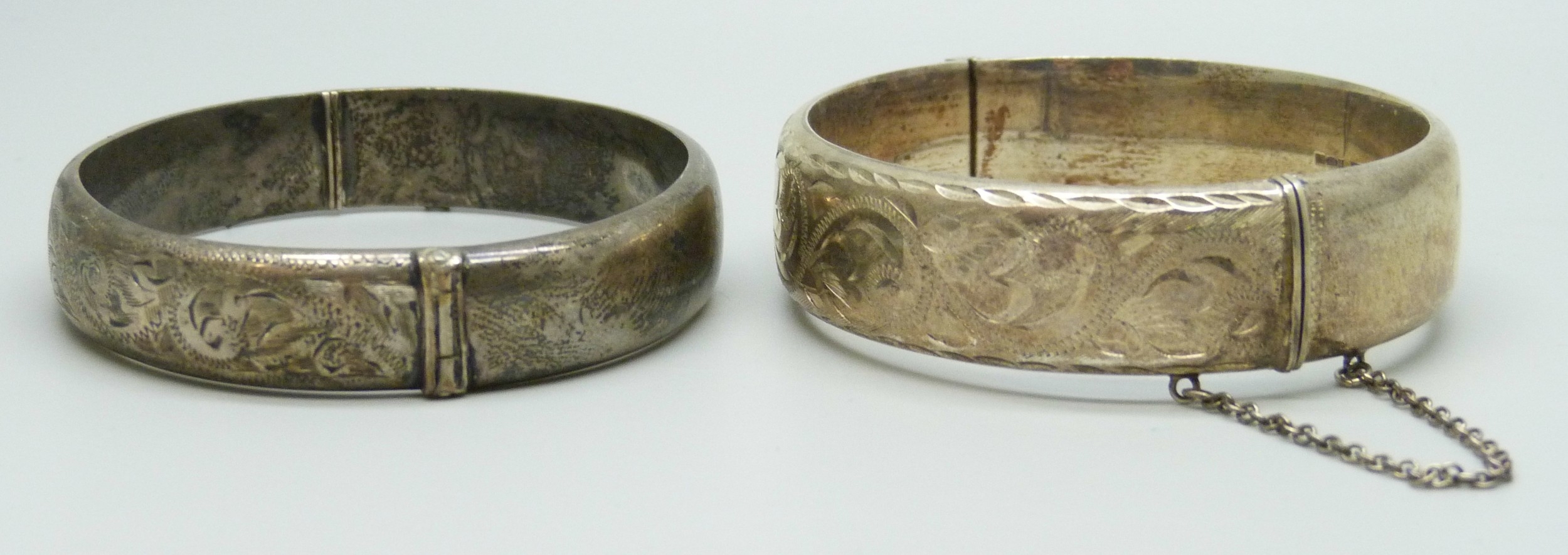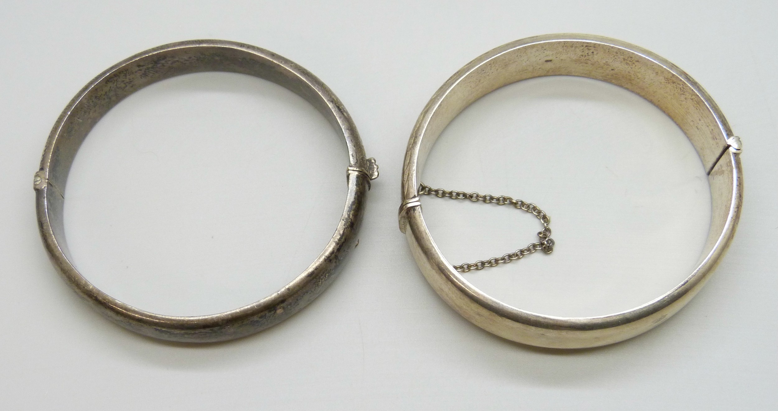 Two silver bangles, 45g total