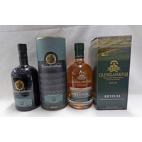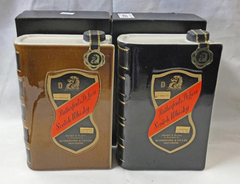 2 CERAMIC BOOK SHAPED DECANTERS OF RUTHERFORDS DELUXE SPIRIT OF SCOTLAND WHISKY . VOLUMES 1 & 3 - 26 2/3 FL OZS, 70 PERCENT PROOF, BOTH BOXED