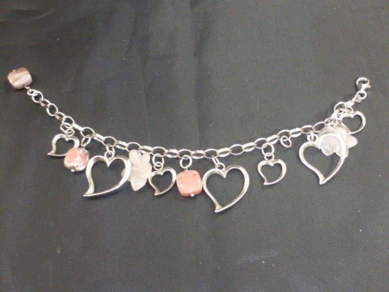 Silver 925 Heart Shaped Bracelet with Gem Stone Decoration