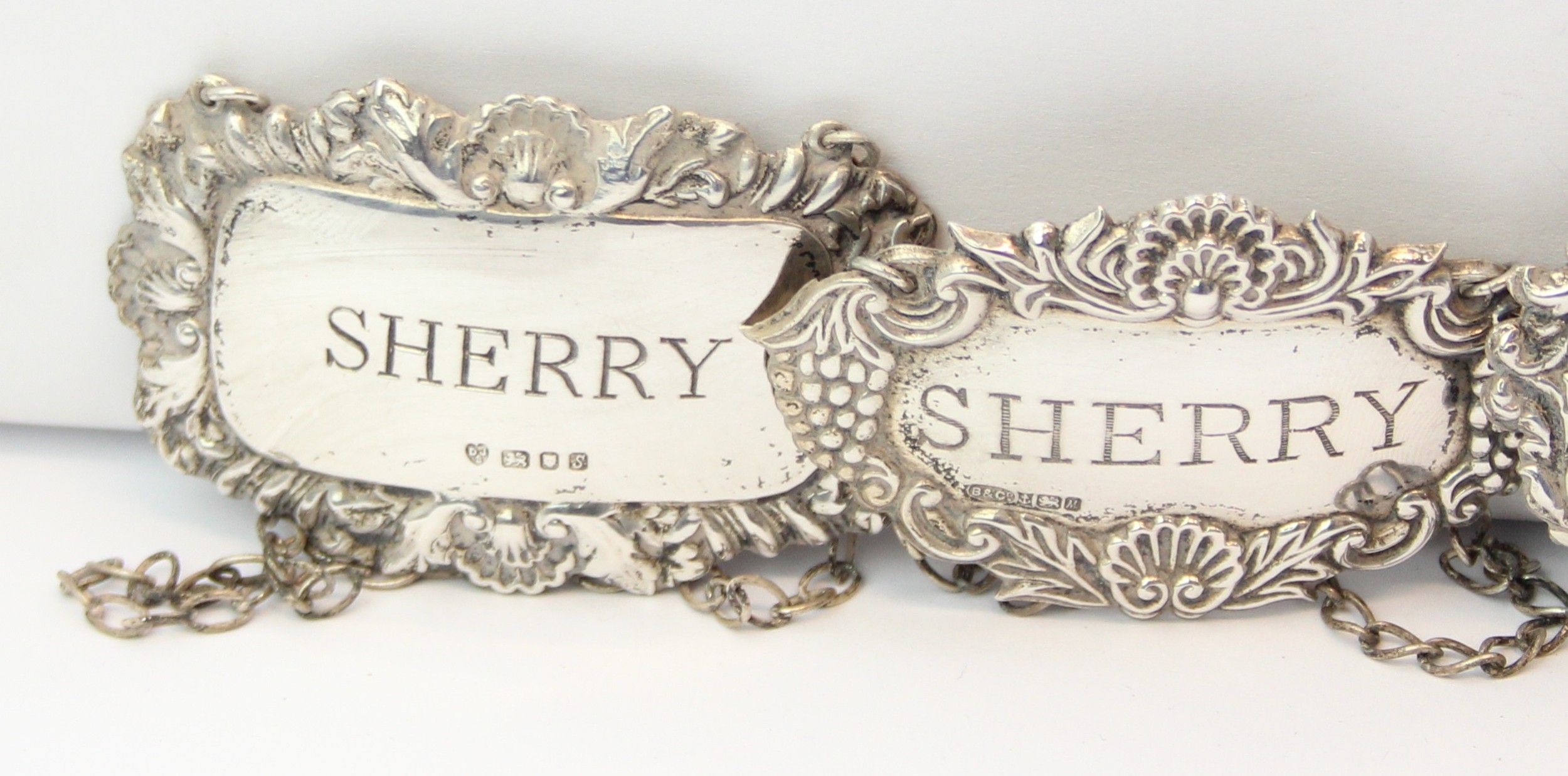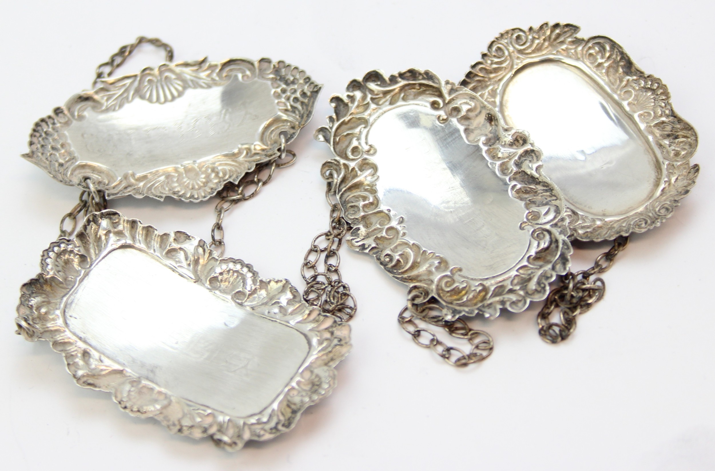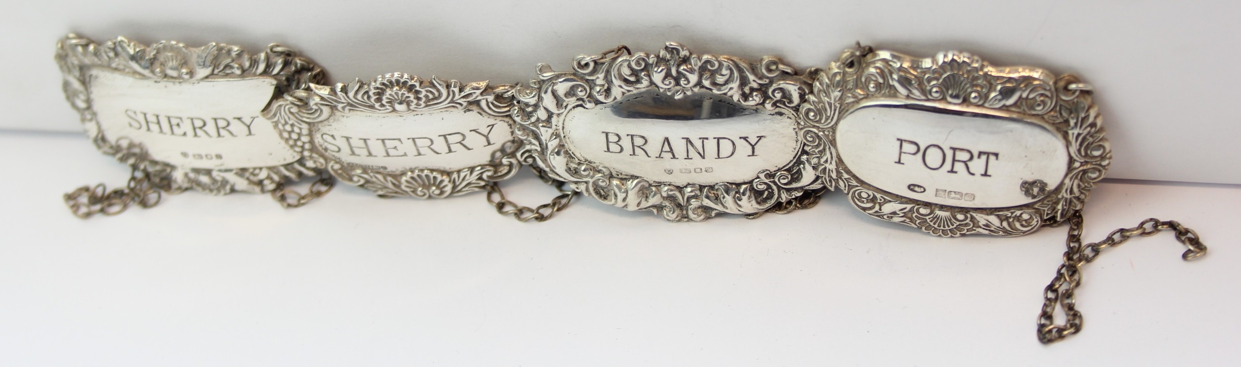 Four assorted modern silver decanter labels, Brandy, Port & Sherry [2], various dates and makers, 41.62g [4]