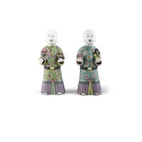 TWO ZHU MAO SHENG WORKSHOP FAMILLE ROSE SITTING MILEFOS ?? ??? ??????? China, Republic period H: 26cm (2)