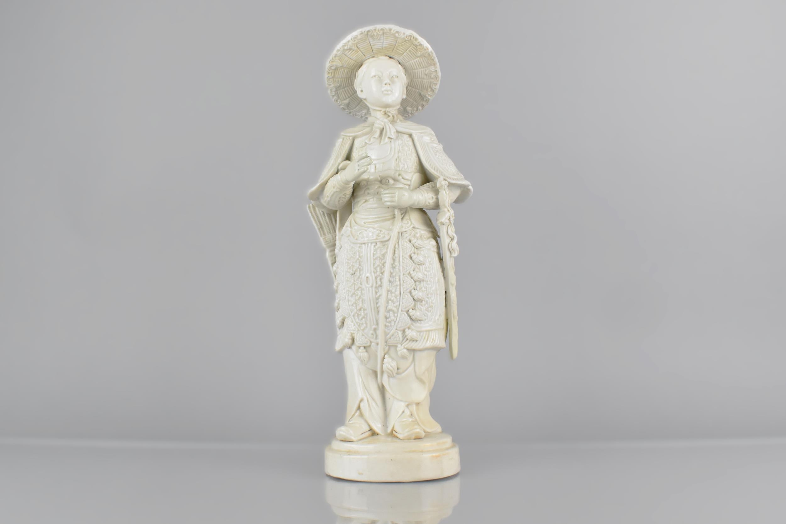 A Chinese Qing Dynasty Porcelain Study of a Soldier Modelled Standing Wearing Finley Detailed Armour and Equipped with Sword and Quiver of Arrows 32cm High Condition not Perfect with Restoration
