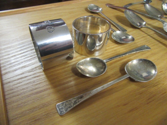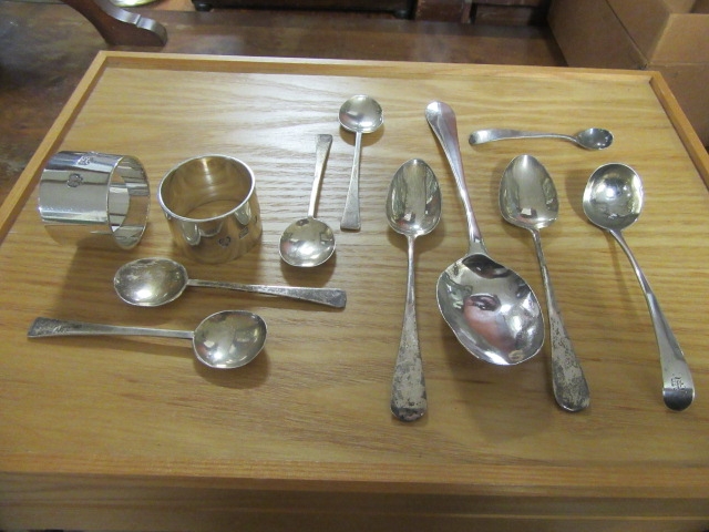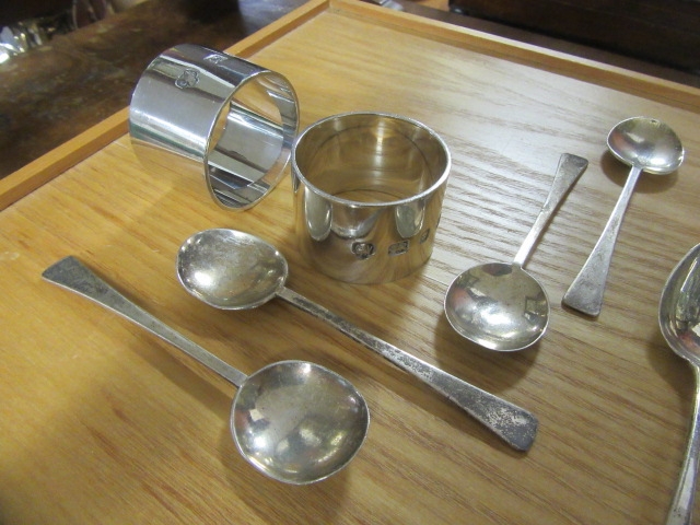 QUANTITY OF SILVER ITEMS INCLUDING A PAIR OF NAPKIN RINGS ETC